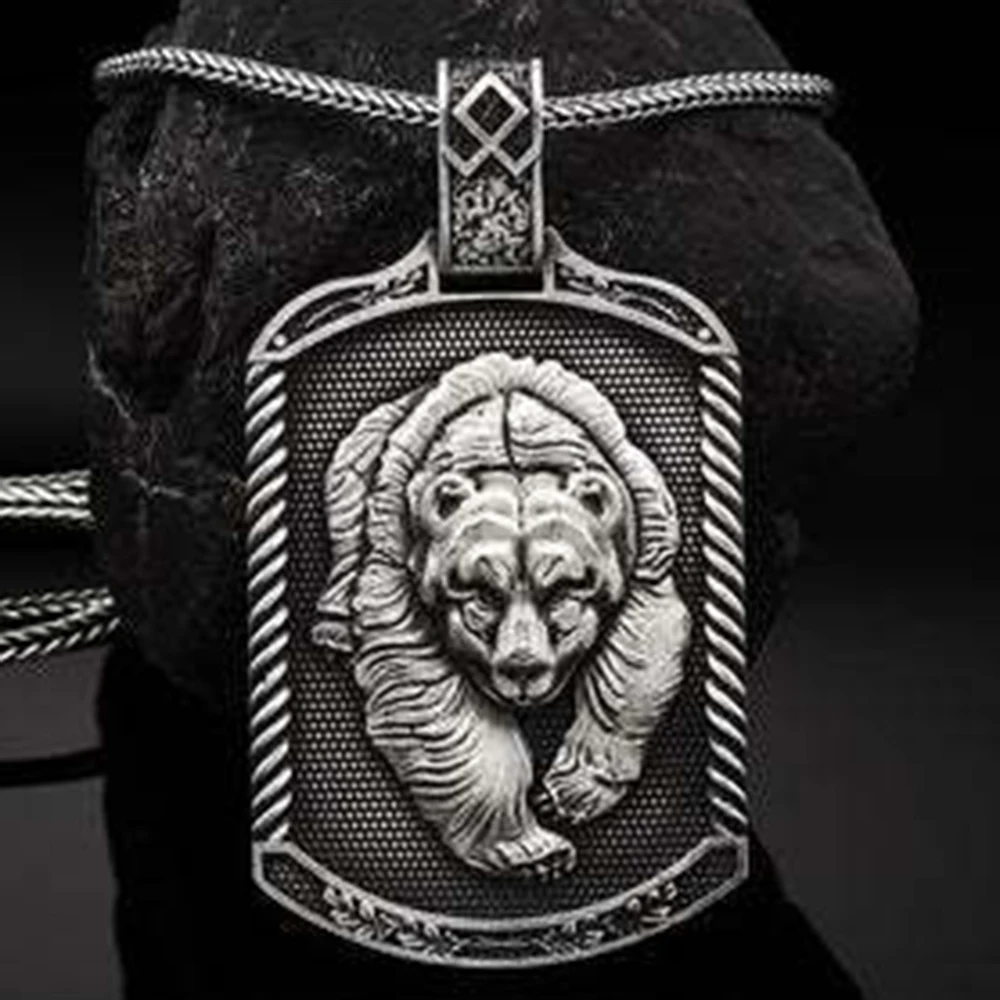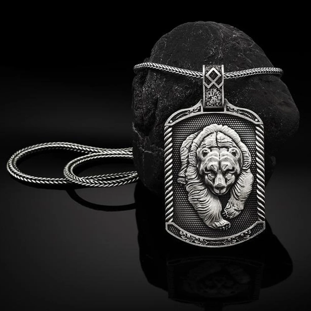 Viking War Bear Pendant Necklace Retro Men's Tag Hip Hop Pure Tin Ins Style Chain Necklaces for women