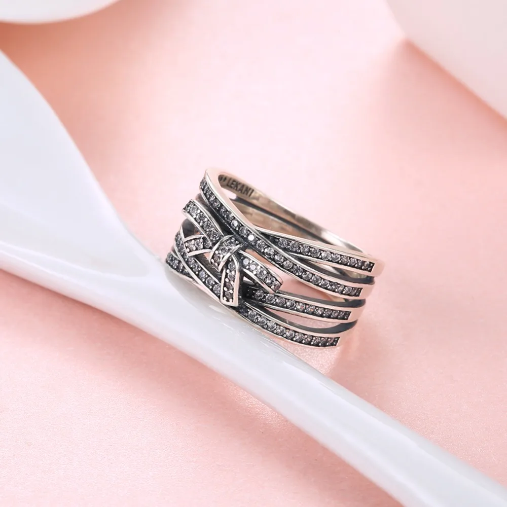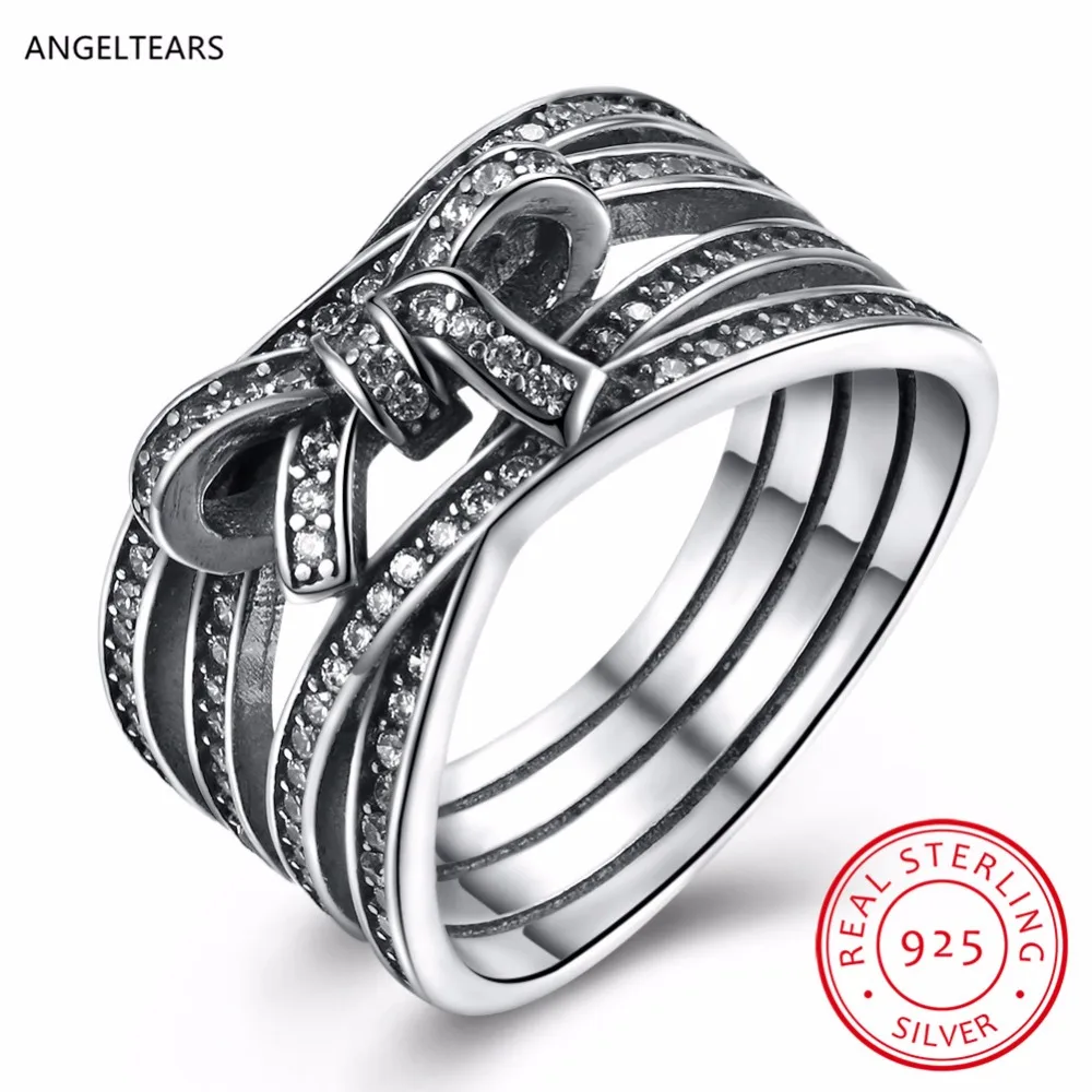 Vintage 925 Sterling Silver Bowknot Finger Ring with Zircon Woman Classic Fine Party Jewelry Birthd gift anel bague