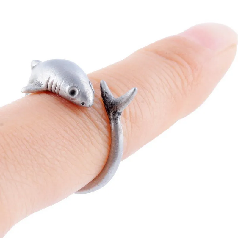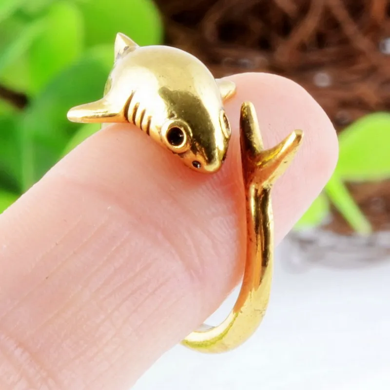 vintage Adjustable alloy animal ring ancient gold/silver shark Rings Jewelry for men or women Animal Lifelike shark ring r09