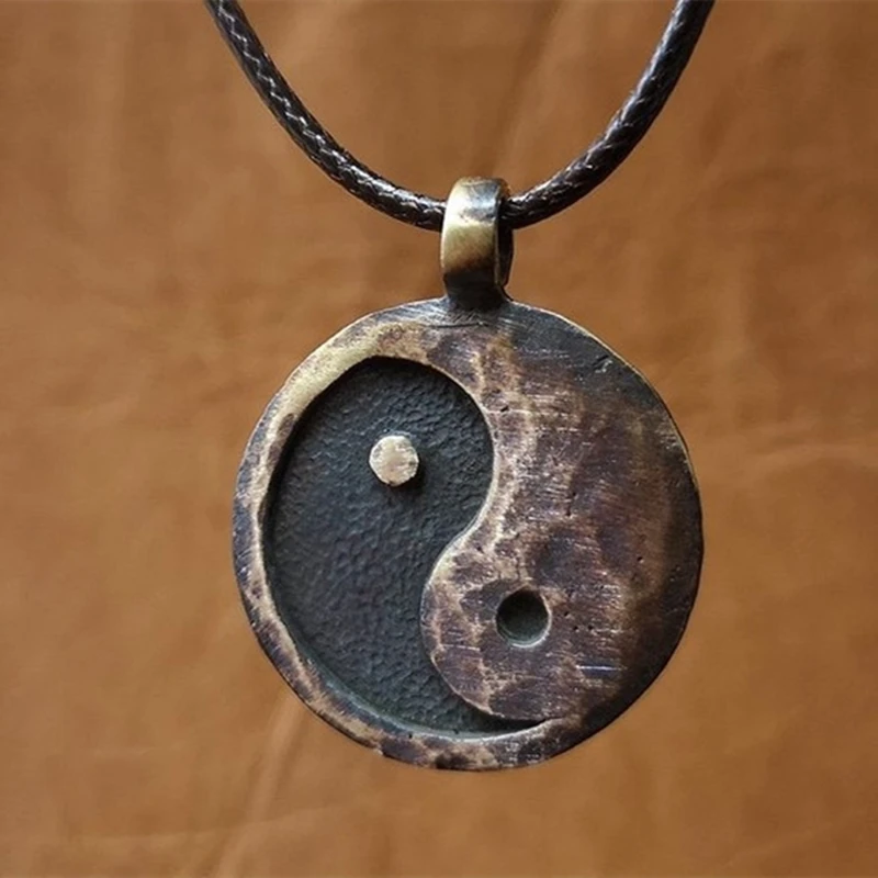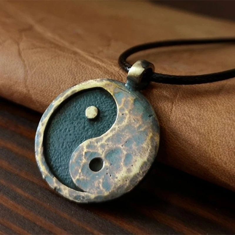Vintage Ancient Looking Yin Yang Necklace Charm Pendant Necklaces for Women Men Party Jewelry Gifts Chinese Kongfu Man
