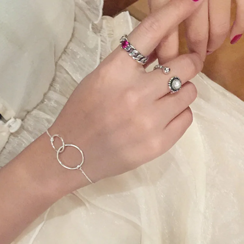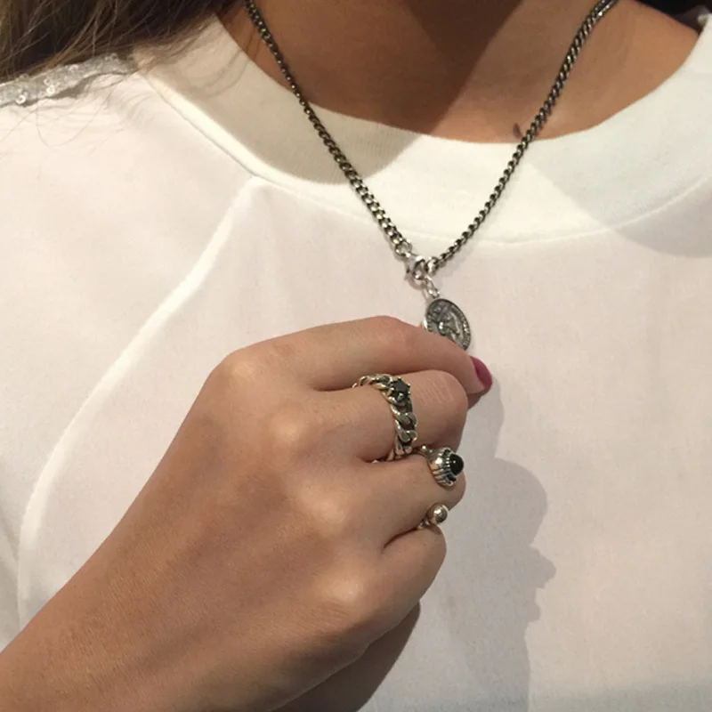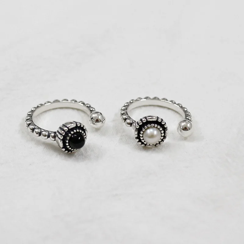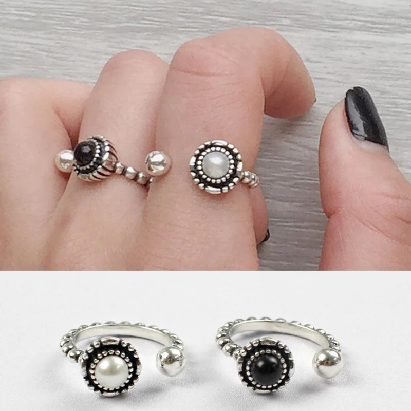 Vintage Authentic 100% 925 Sterling Silver Rings For Women Pearl Black Onyx Jewelry