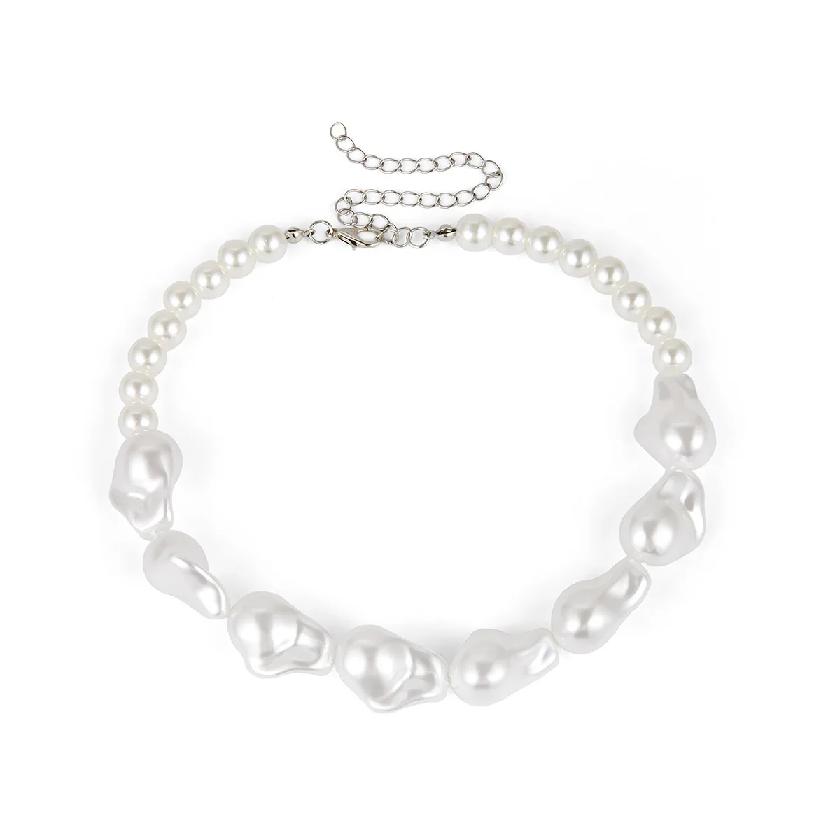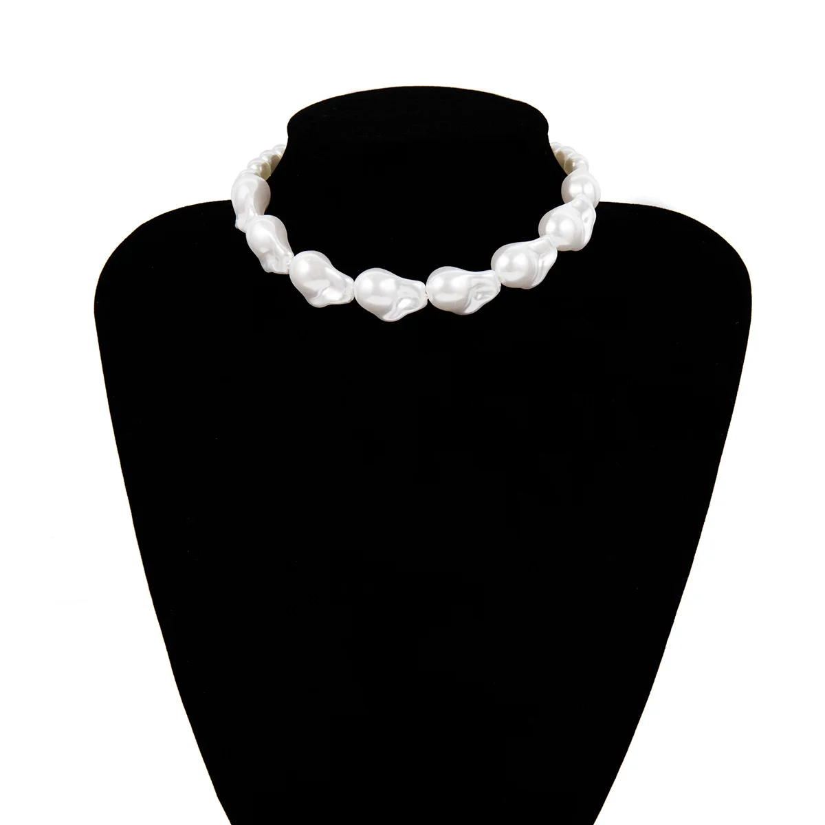 Vintage Big Irregular Pearl Choker Necklace For Women Simple Monolayer Baroque Pearl Chain Necklace Party Wedding Jewelry