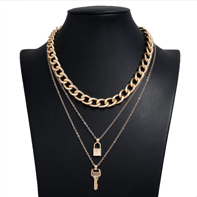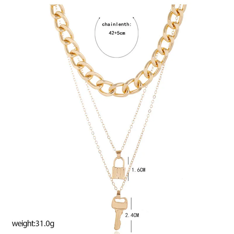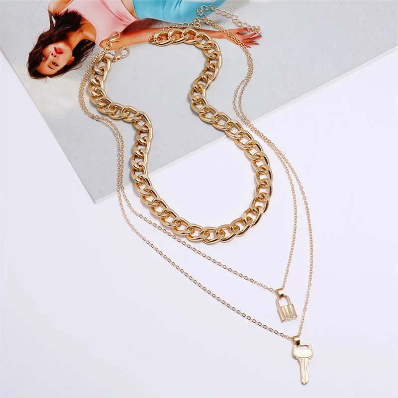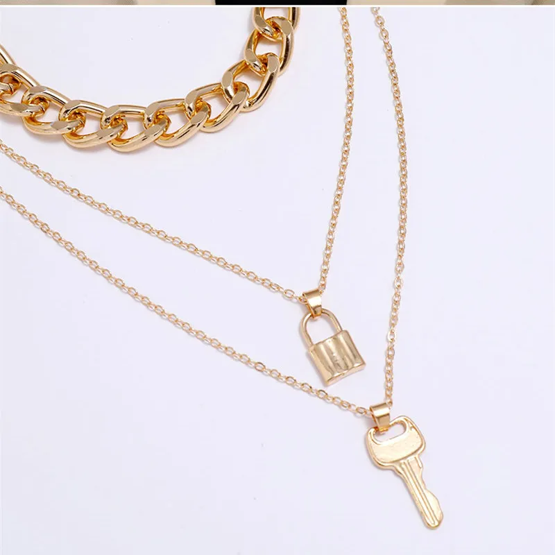 Vintage Bohemian Multilayer Ladies Necklace For Women Gold Chain Key Lock Pendant Long Chain Necklace Jewelry Trends New