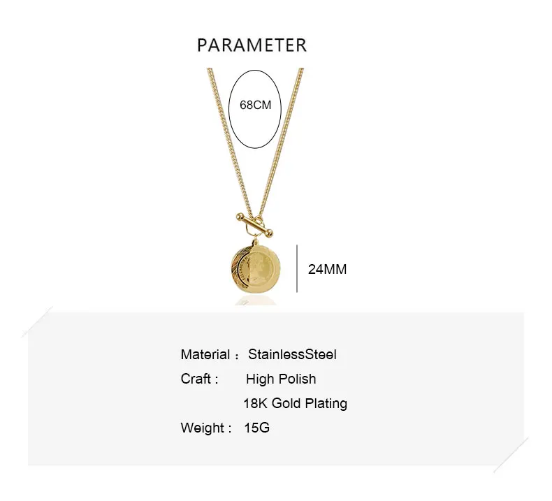 Vintage Carved Coin Necklace For Women Stainless Steel Retro Figure Medallion Pendant Long Necklaces Bohemia Jewelry