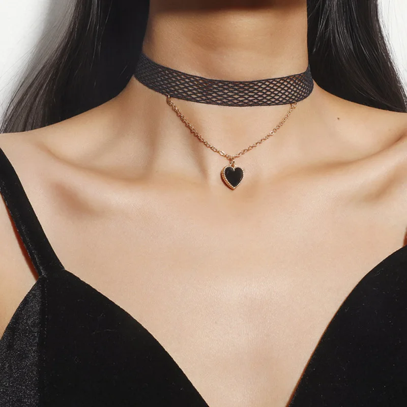 Vintage Choker Golden Chain Pearl Heart Pendant Necklace for Women Sexy Black Velvet Neck Collar Jewelry Lover's Gift