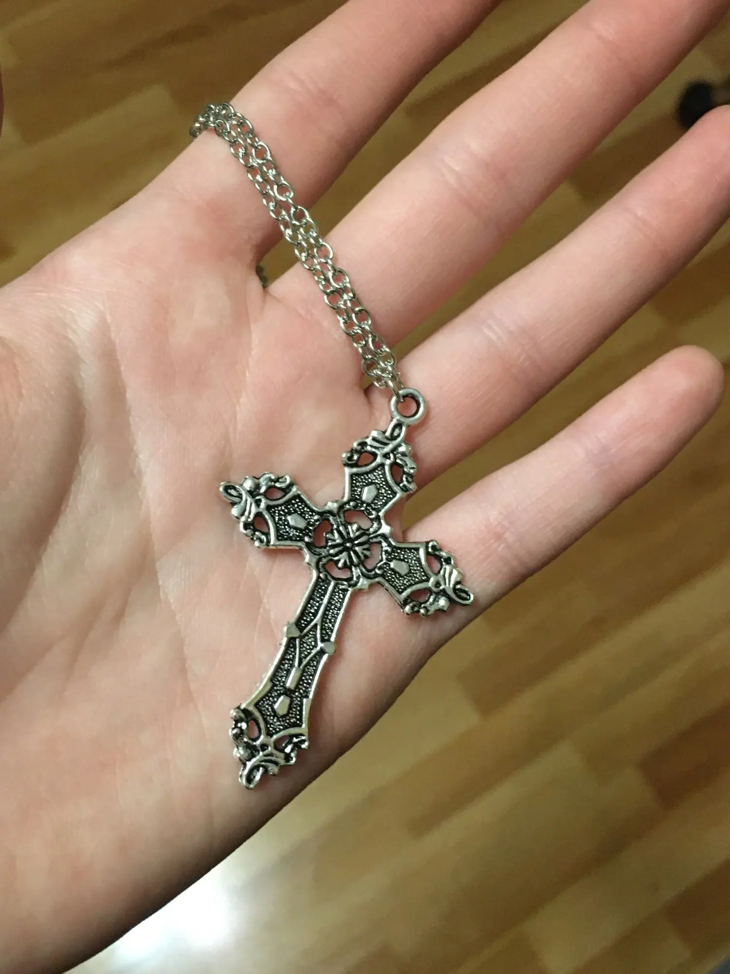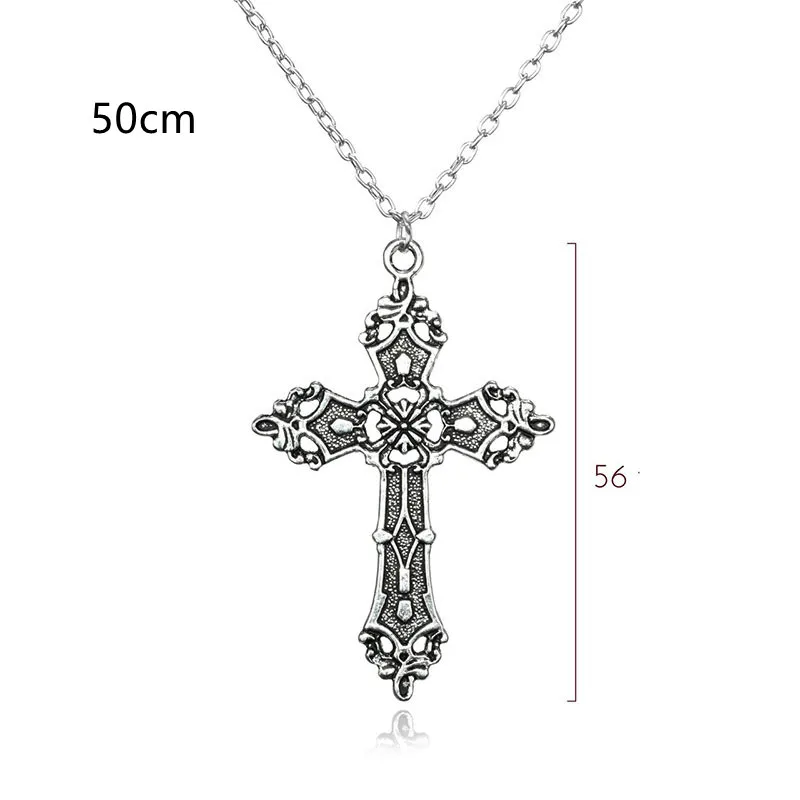 Vintage Cross Pendant Necklace For Women Men Gift Long Chain Punk Goth Jewelry Accessories Choker Gothic