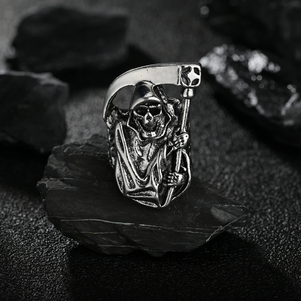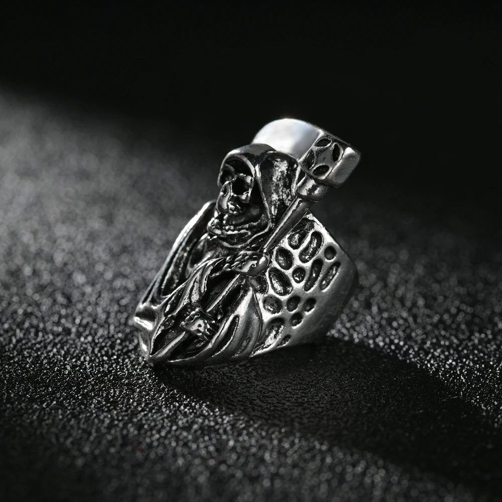 Vintage Death Hip Hop Punk Rock Alloy Silvery Ring for Men Women Grim Reaper Sickle Rings Jewelry