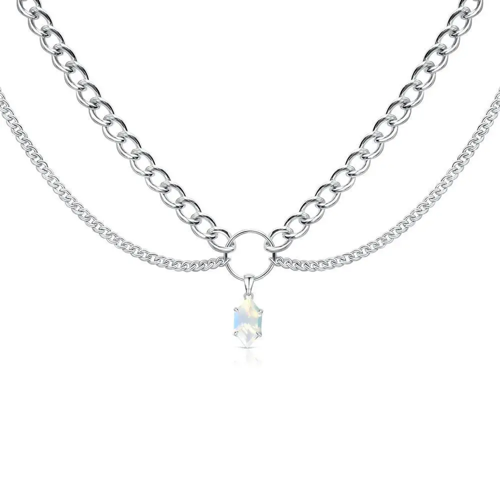 Vintage Double Chain Opal Pendant Choker Necklace For Women Girl Collar Aesthetic Goth Necklaces Christmas Halloween Party Jewe