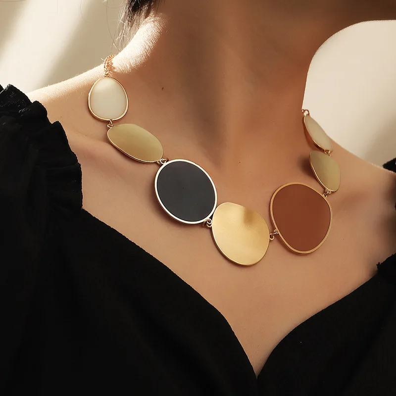 Vintage Exaggerated Round Pendant Choker Necklaces for Women Boho Gold Chain Big Wafer Dangle Statement Necklace Jewelry