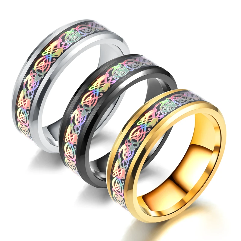 Vintage Men Stainless Steel Rings Fashion Engagement Dragon Finger Ring For Lovers Wedding Punk Jewelry Bijoux Gift DH-065