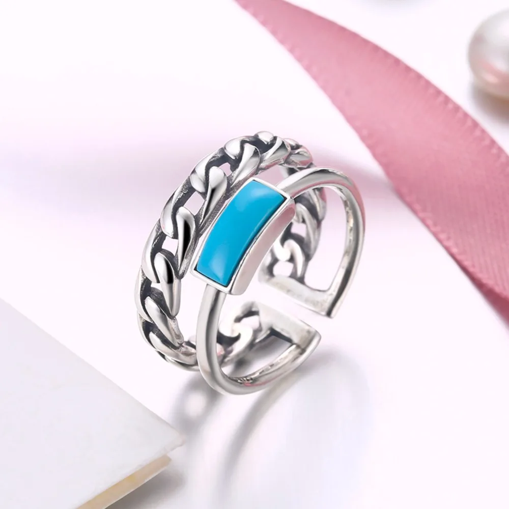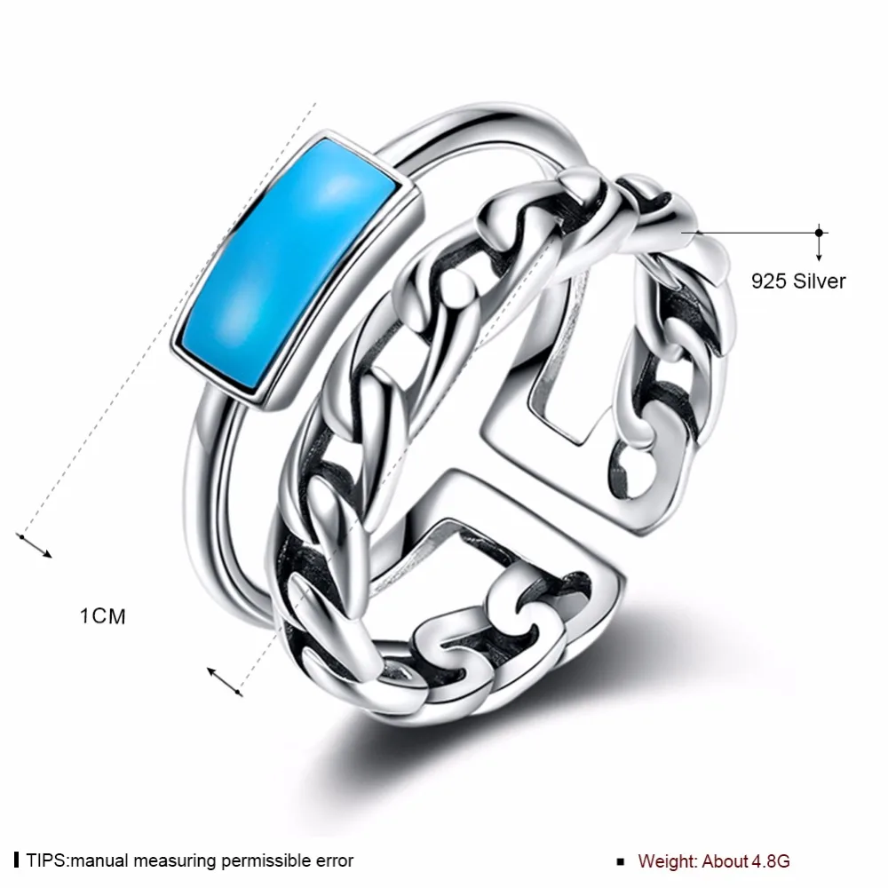 Vintage Real 925 Sterling Silver Turquoise Opening Finger Ring Woman's Fashion Party Fine Jewelry drop shipping anel bague