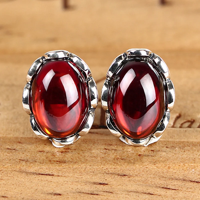 Vintage Red Stone 925 Sterling Silver Earrings Female Ruby Vintage Silver Earrings Wedding Party Stud Earrings 2020 Jewellery