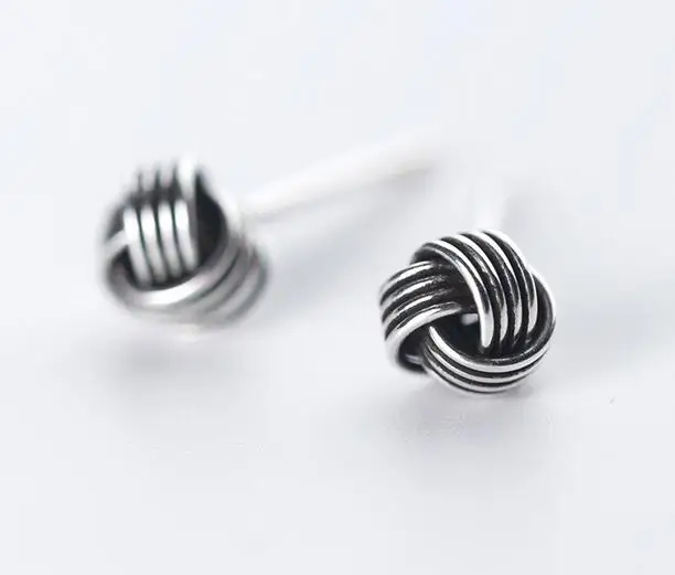 Vintage Retro 100% Real. 925 Sterling Silver Fine Jewelry Twisted Love Knot Stud earrings 2.5mm 3mm 4mm 5mm 6mm 7mm GTLE1683