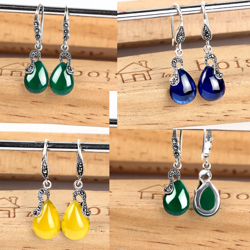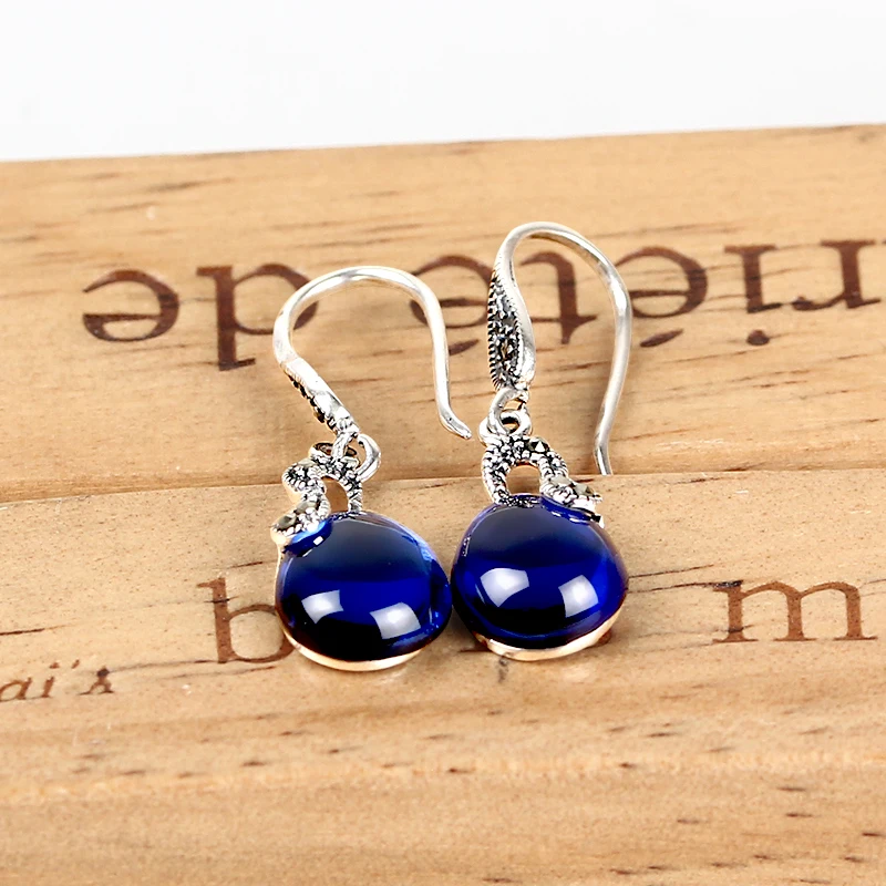 Vintage S925 Silver Earrings for Women Blue Water Drop Tibetan Long Silver Earrings Patry Silver 925 Earrings 2020 Earrings
