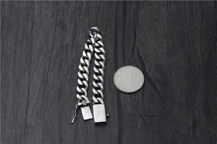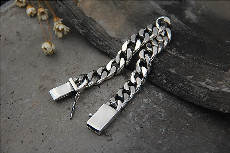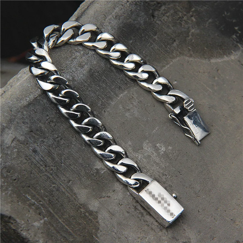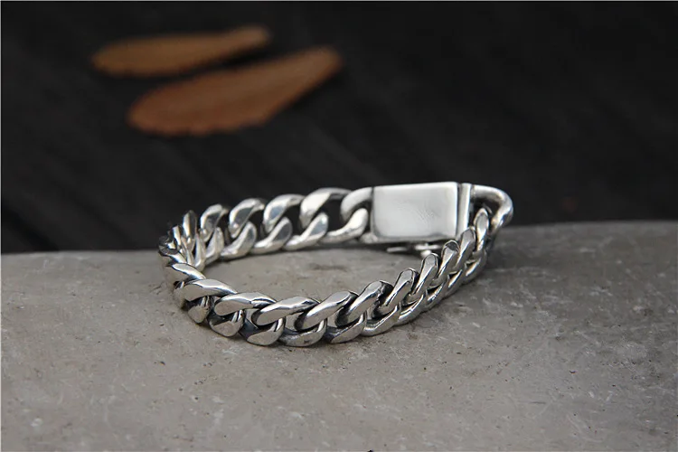 Vintage S925 W Chain Rock Punk Bracelet Male Sterling Silver Domineering Fashion European And American Personality Jewelry