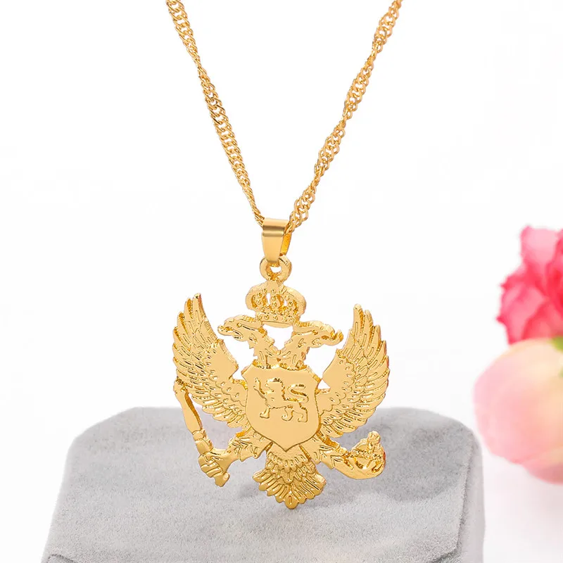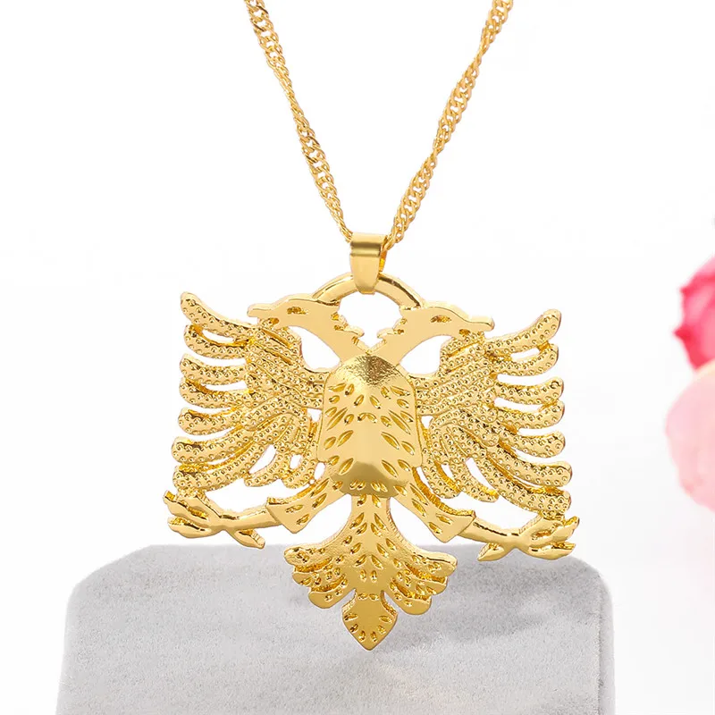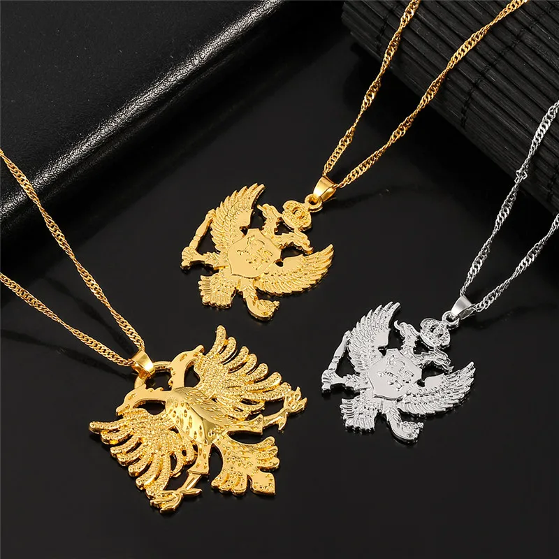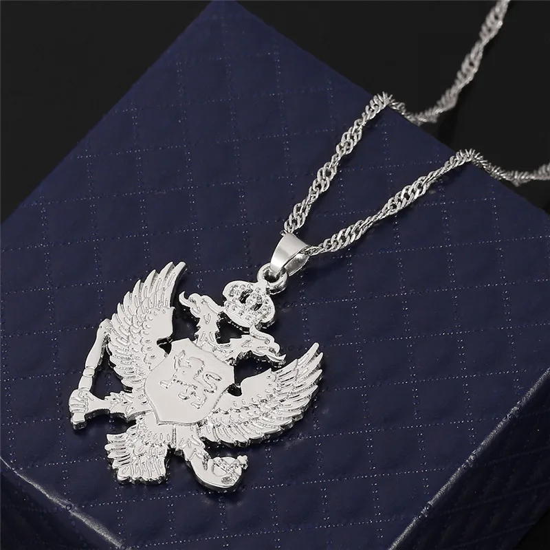 Vintage Solid Russia Emblem Albania Eagle Pendant Necklaces Coat of Arms Double Headed Eagle Pendants Chain Ethnic Gifts