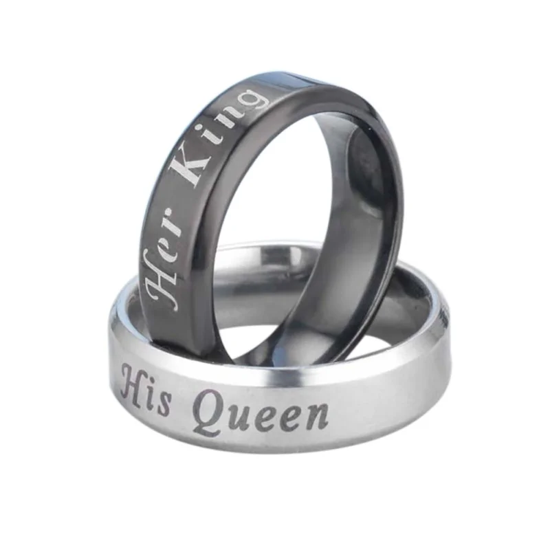 Vintage Stainless Steel Ring Mens and Womens Her King/His Queen Printed Jewelry Wedding Gift Band Ring for Lovers