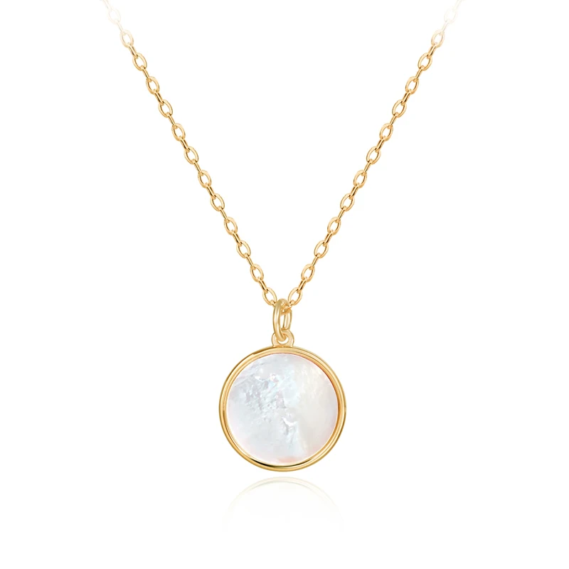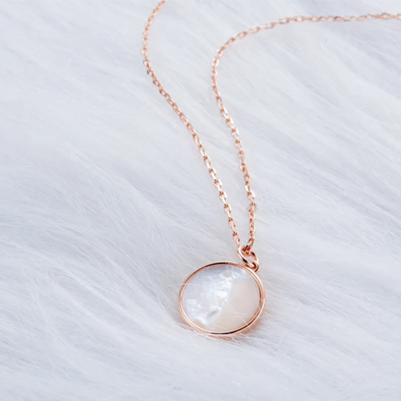 Vintage Sterling Silver White Shell Pendant Necklace Round Natural Mother of Pearl Necklaces Woman Girls Jewelry Gift ZK30