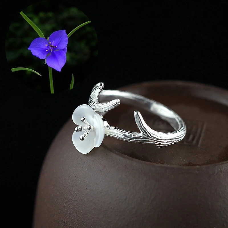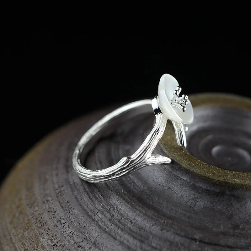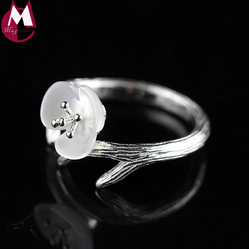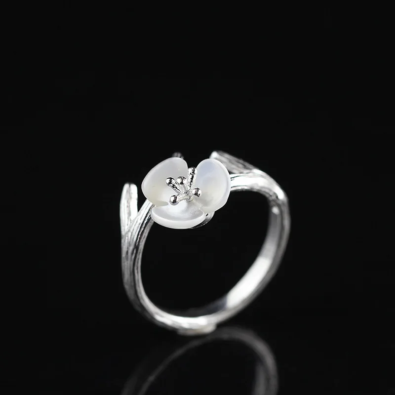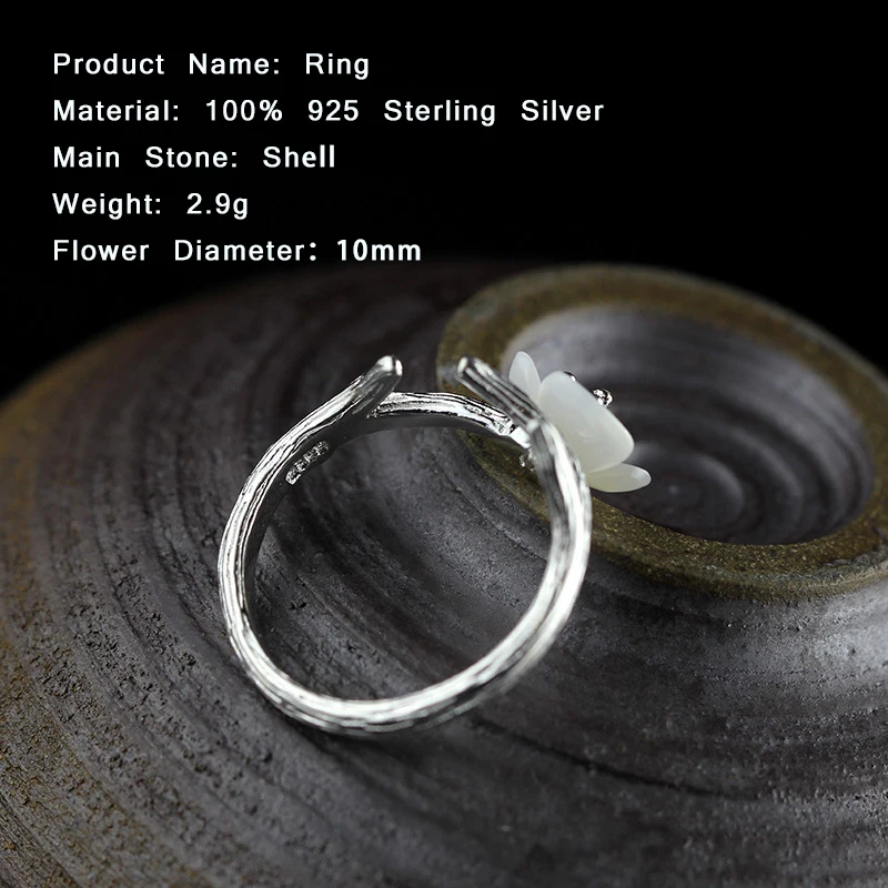Vintage Tree Branch Crystal Shell Flower Ring Female Gemstone Jewelry Gifts 100% 925 Sterling Silver Ring For Women Wedding SR67