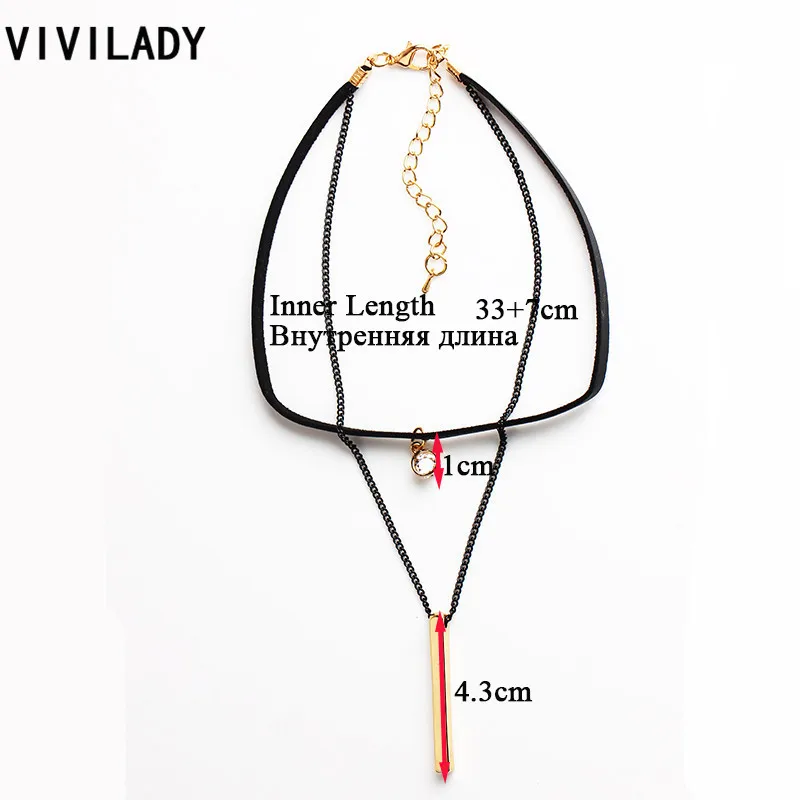 VIVILADY Alloy Two-layers Black Rope Crystal Geometric Cuboid Necklace for Women Girl Jewelry Gifts Bijoux Accessory