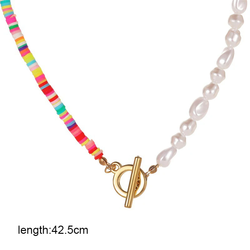 VIVILADY Minority Simple Style Soft Ceramic Material Splicing Imitation Pearl Female Necklace Beach Vocation Jewellry