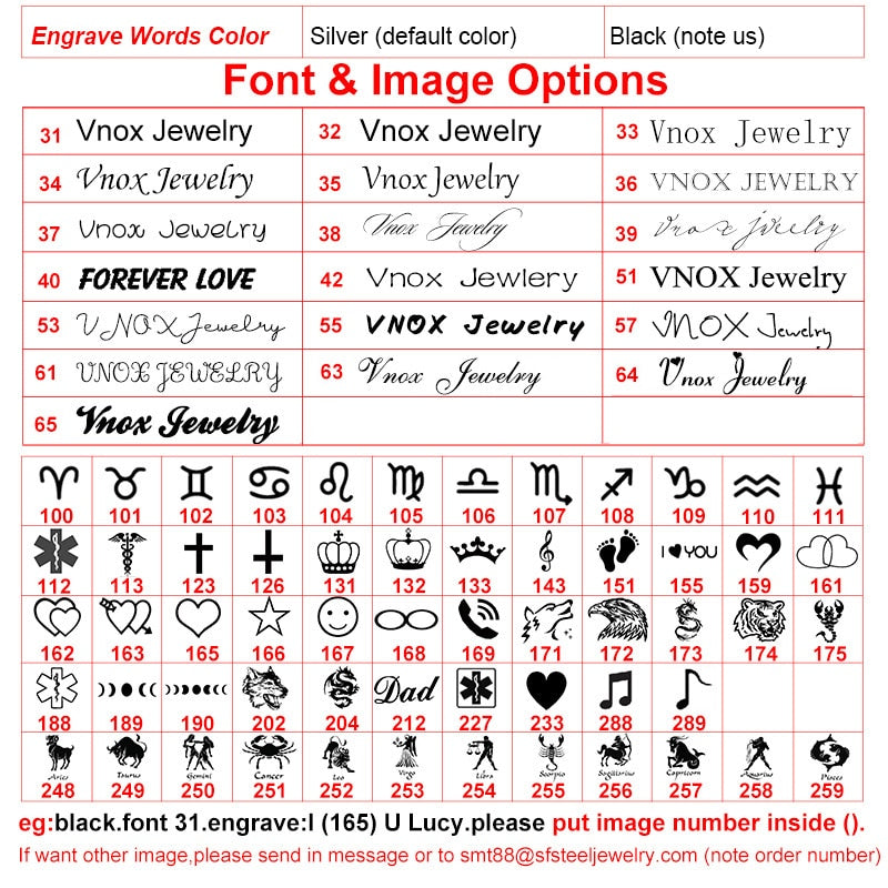 eg: Black font 50, engrave : Lucy (165) forever. | |||