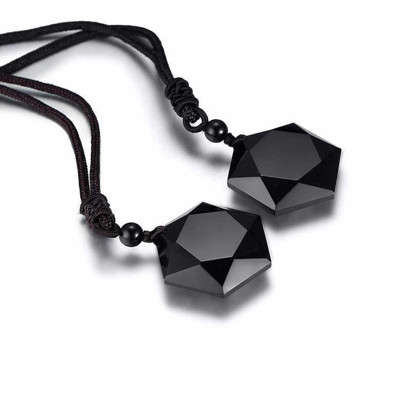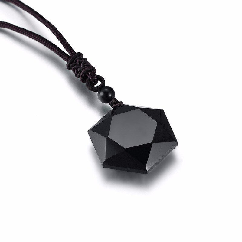 Vnox Drop Shipping Black Obsidian Necklace Star Of David RongDe Men Pendant Lucky Love Crystal Jewelry With Free Adjustable Rope