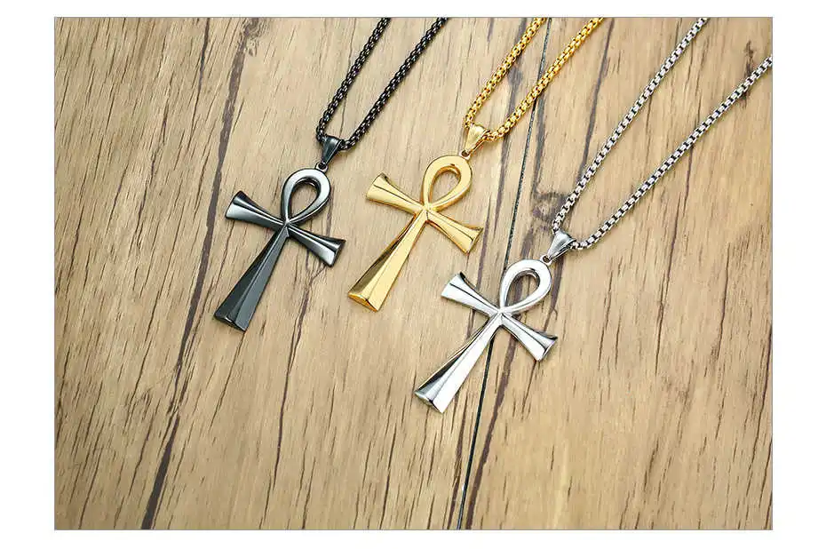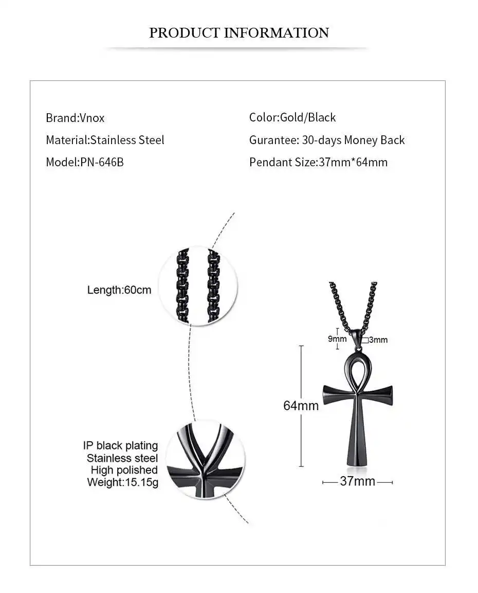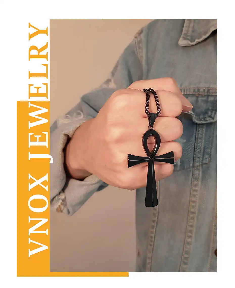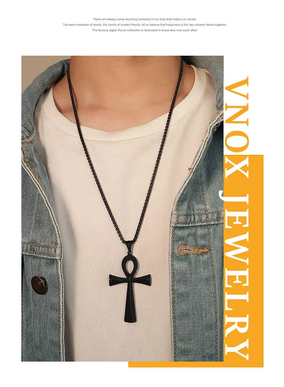 Vnox Religion Egyptian Ankh Crucifix Necklaces Stainless Steel Symbol of Life Cross Pendants Prayer Gifts Jewelry