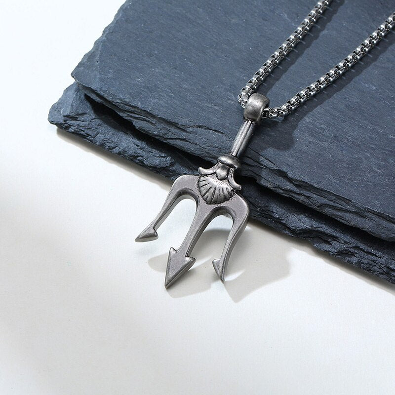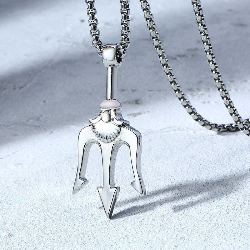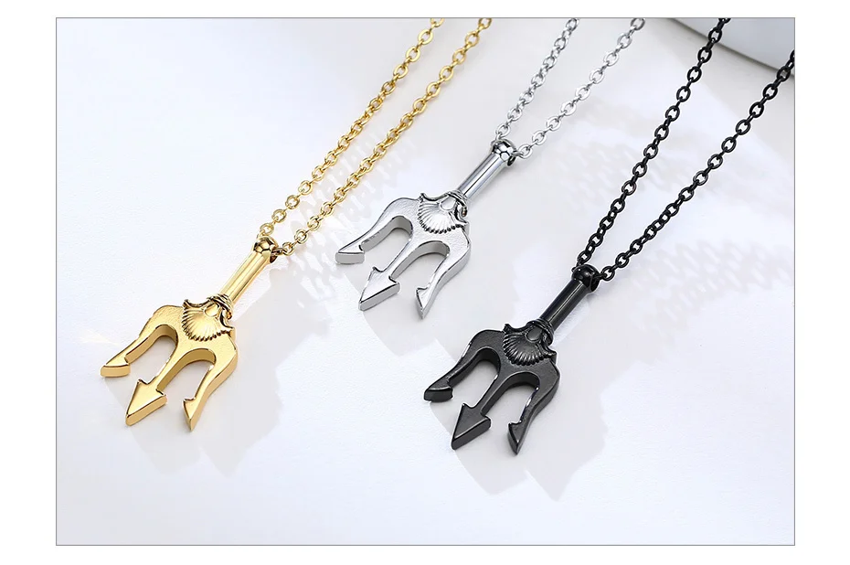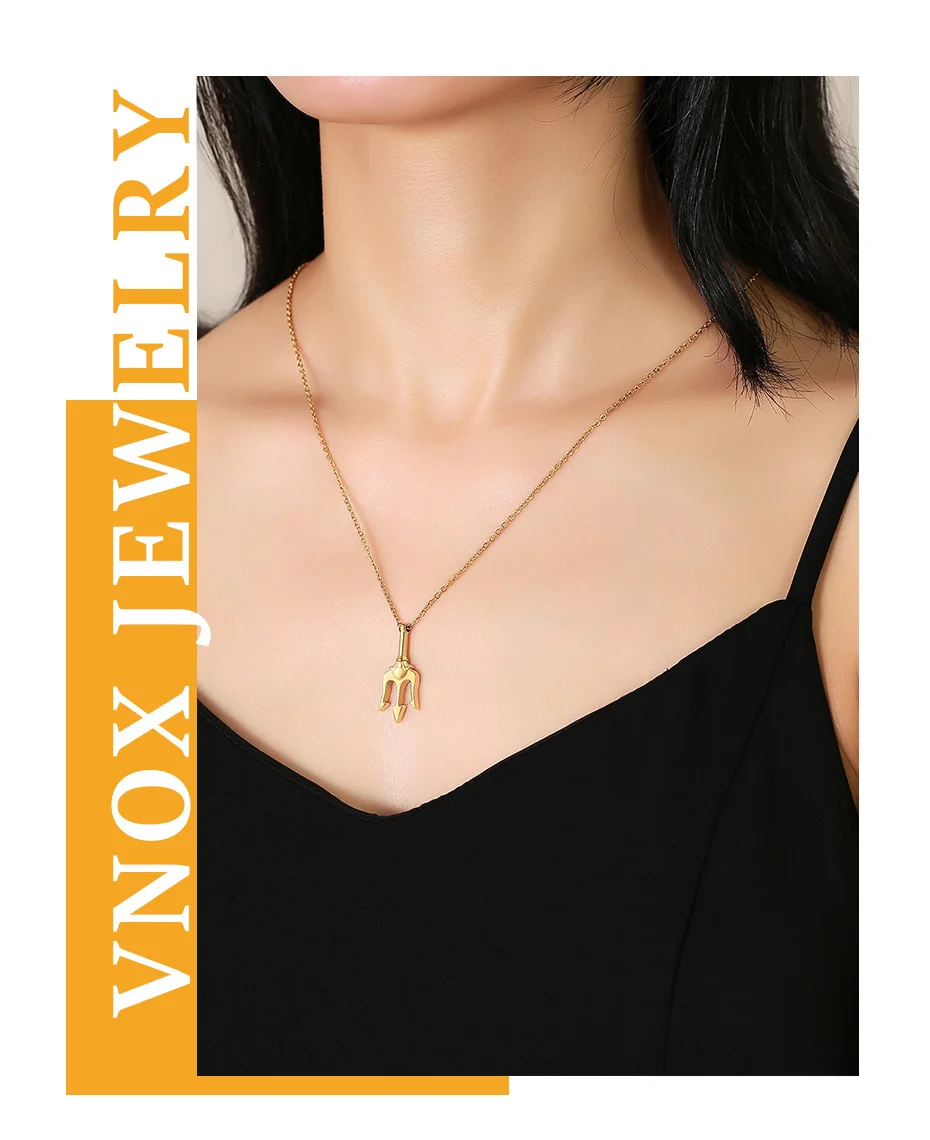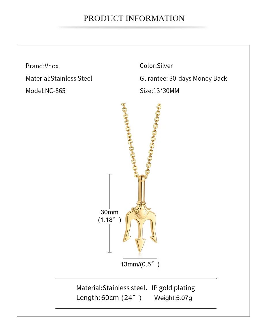 Vnox Rock Punk Neptune Trident Pendant Necklaces for Men Women,Hip Hop Stainless Steel Statement Sea Necklace Accessories