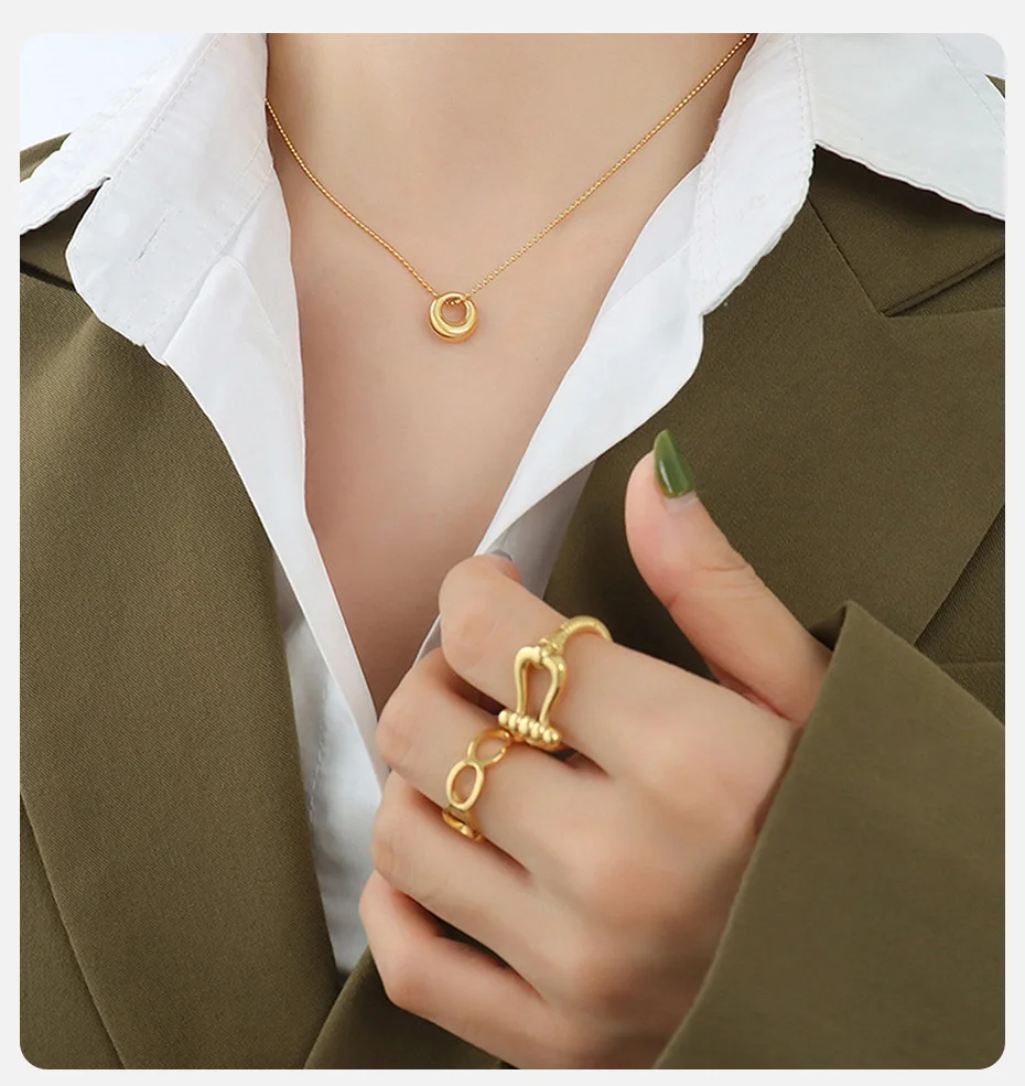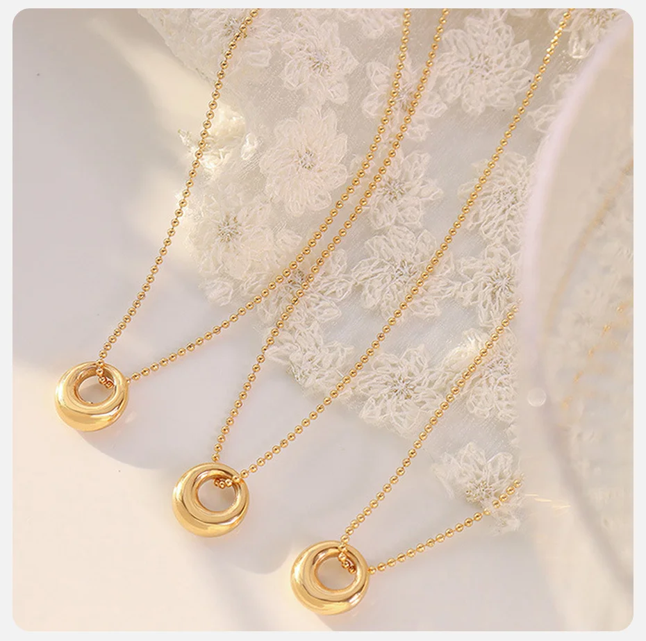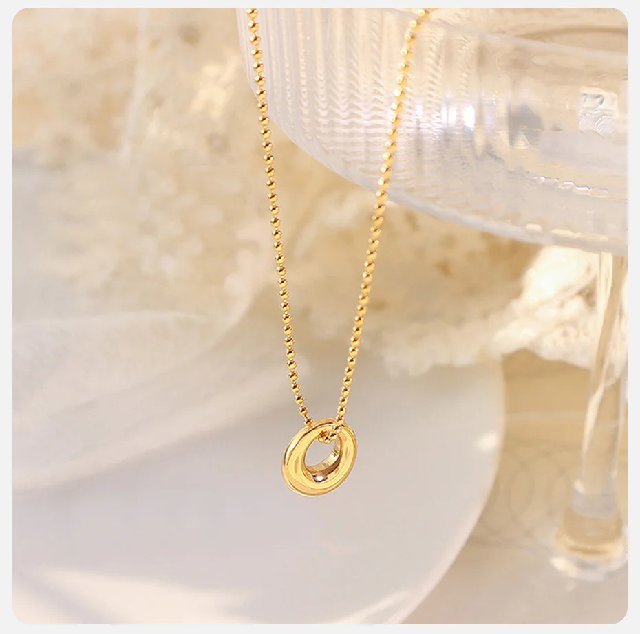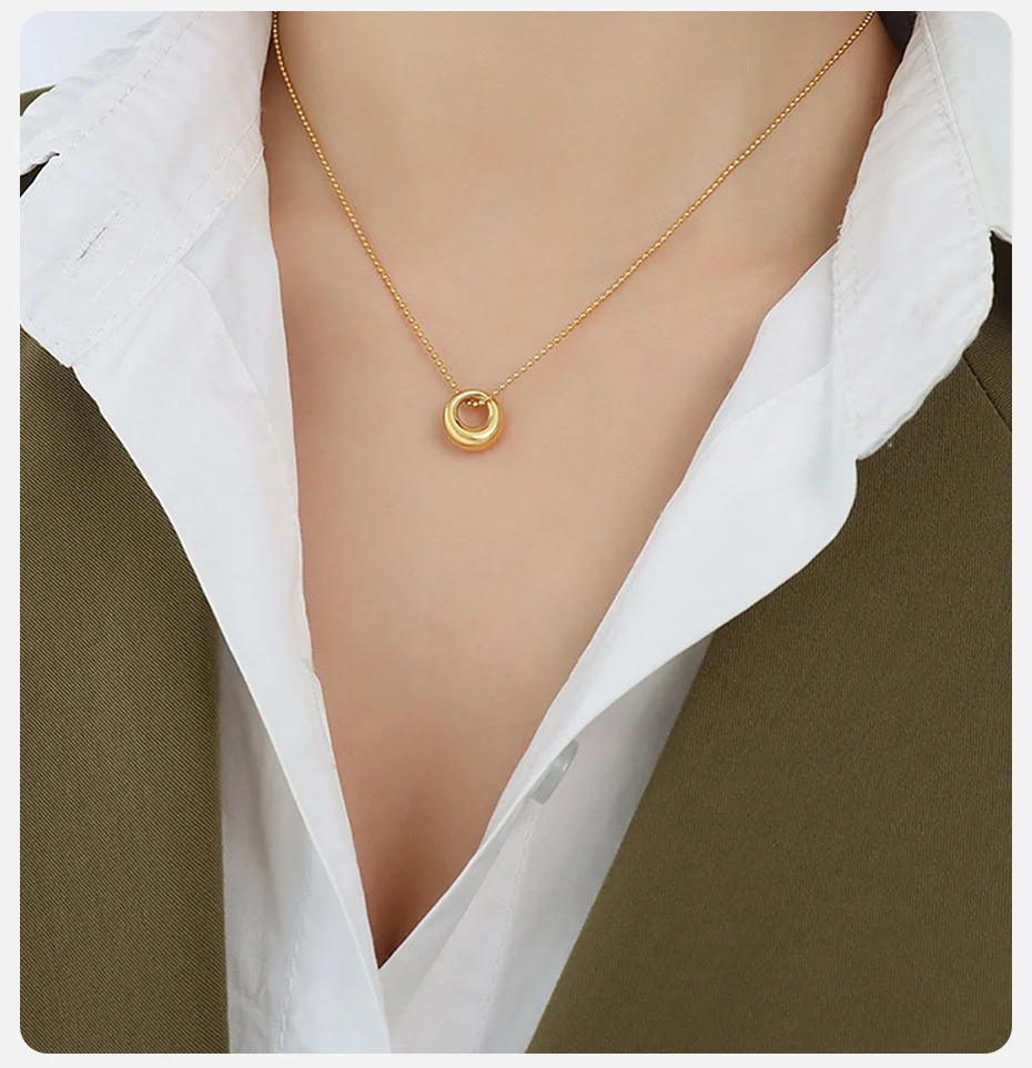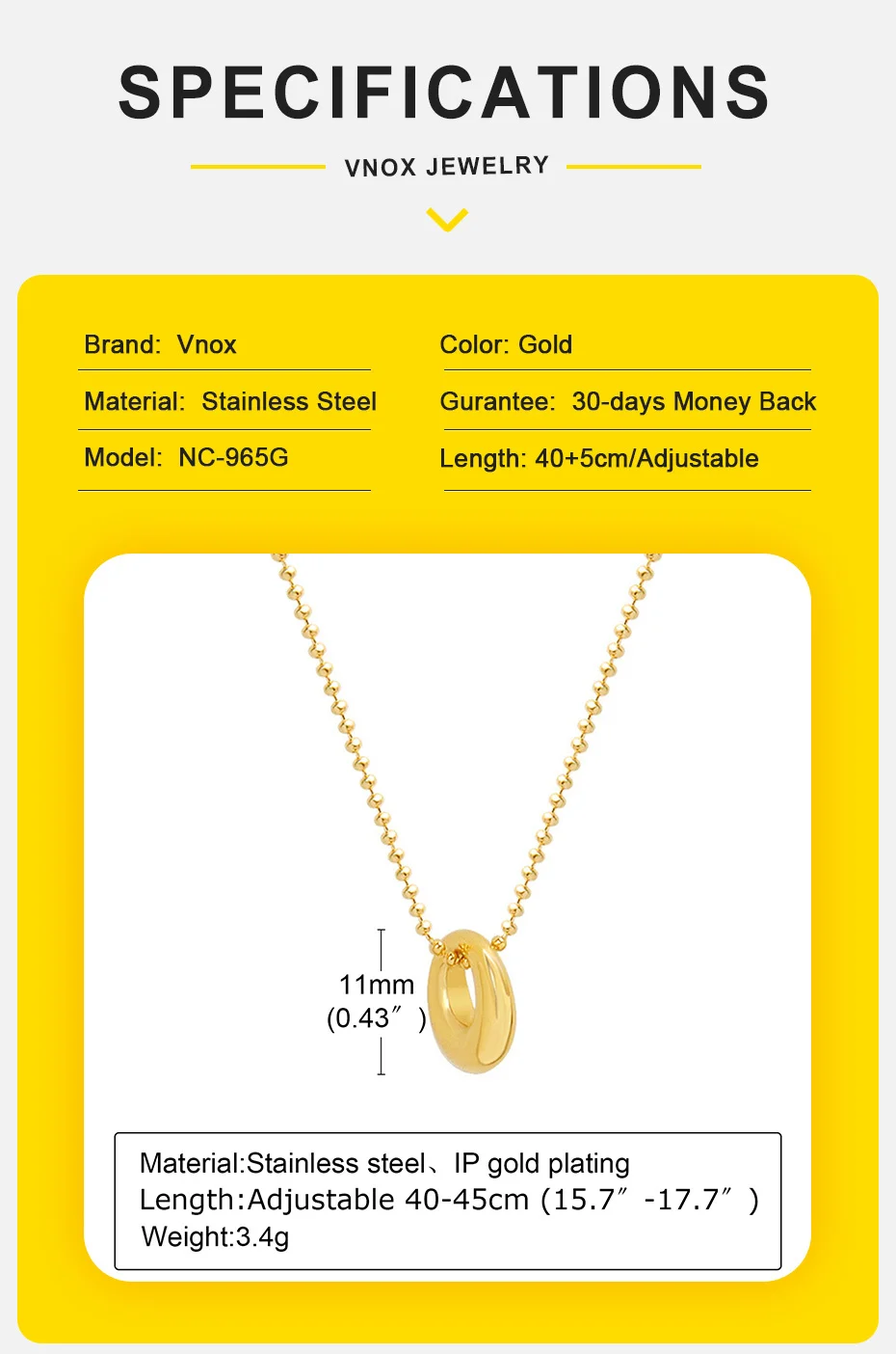 Vnox Simple Oval Circle Necklaces for Women Jewelry, Gold Color Stainless Steel Round Geometric Pendant,Chain Length Adjustable