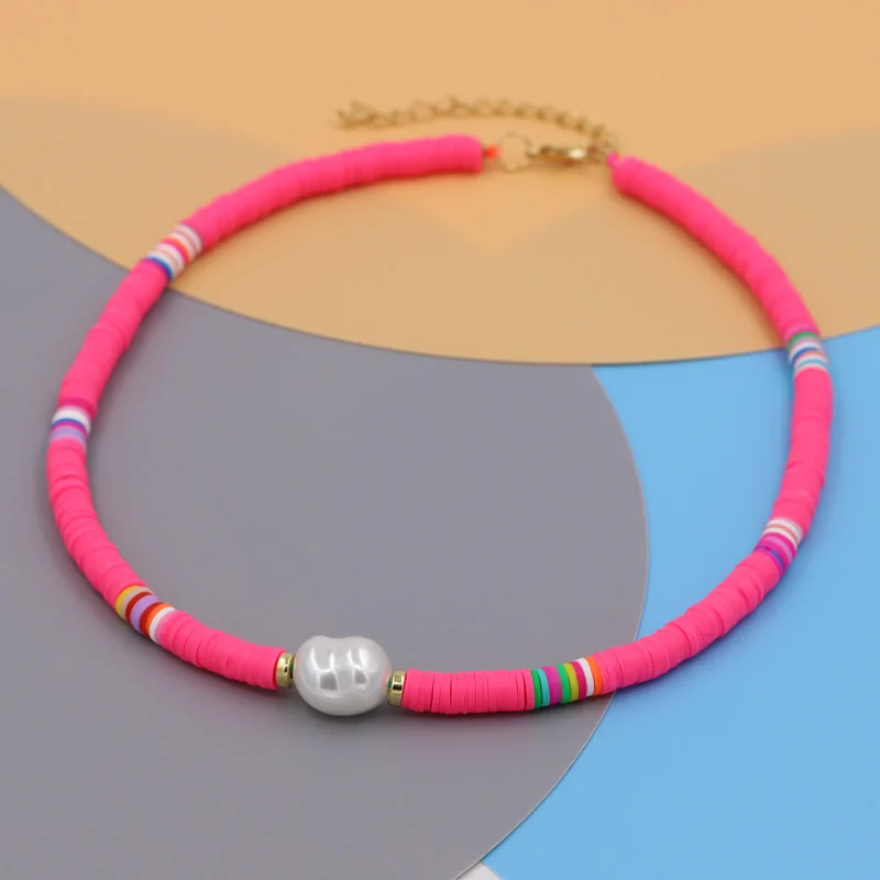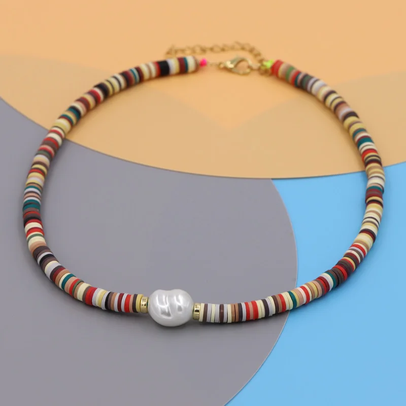 VONNOR Korean Necklaces Costume Jewelry for Women 2022 Choker on the Neck Chain Multicolor Clay Imitation Pearl Necklace