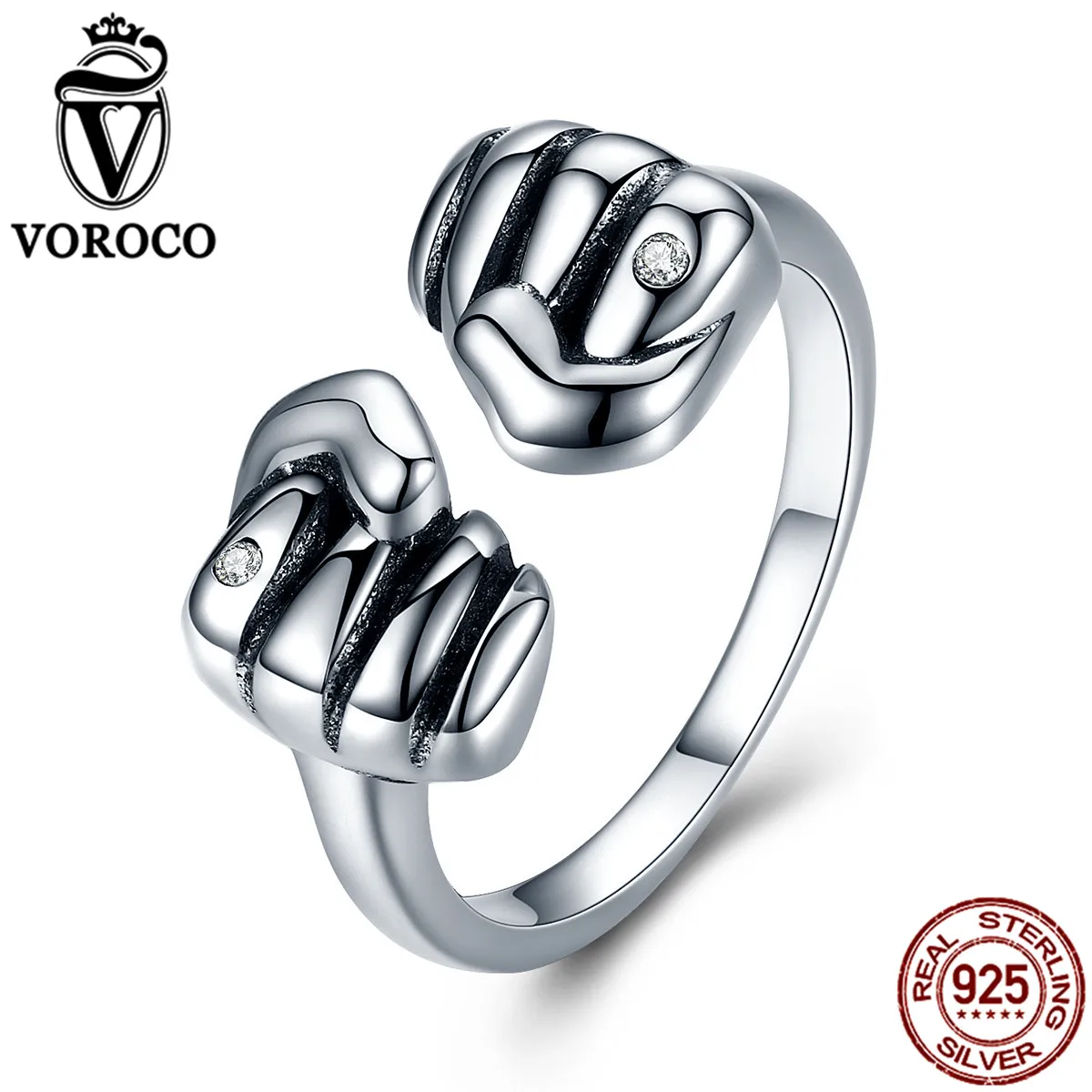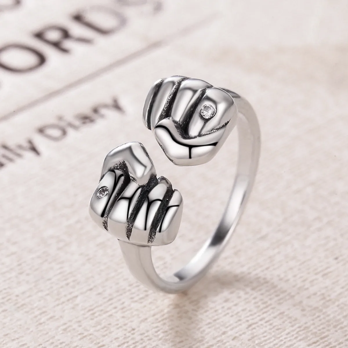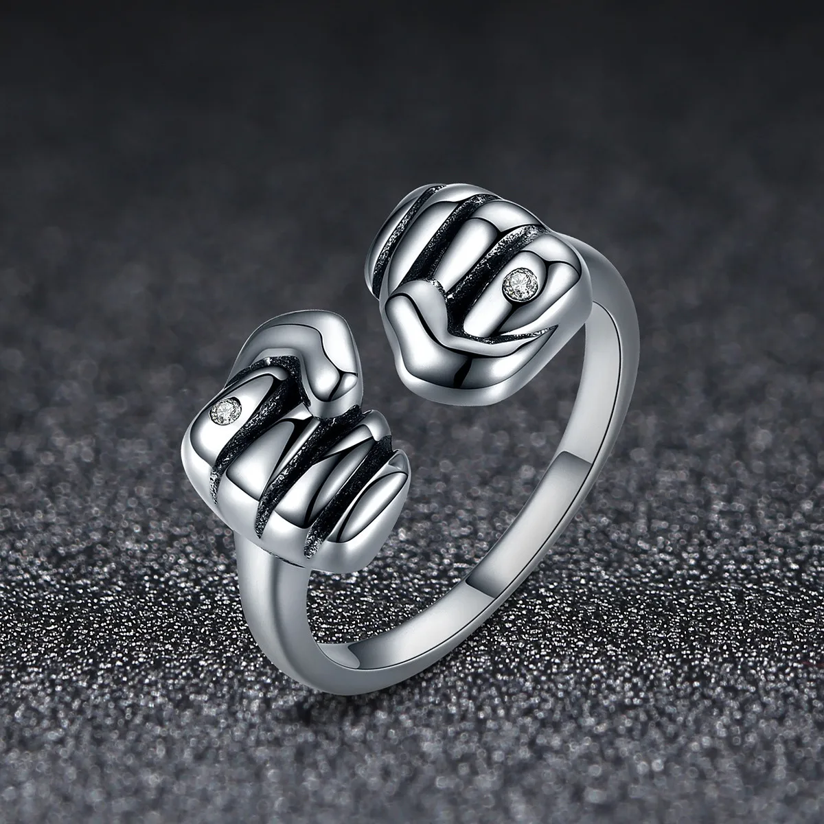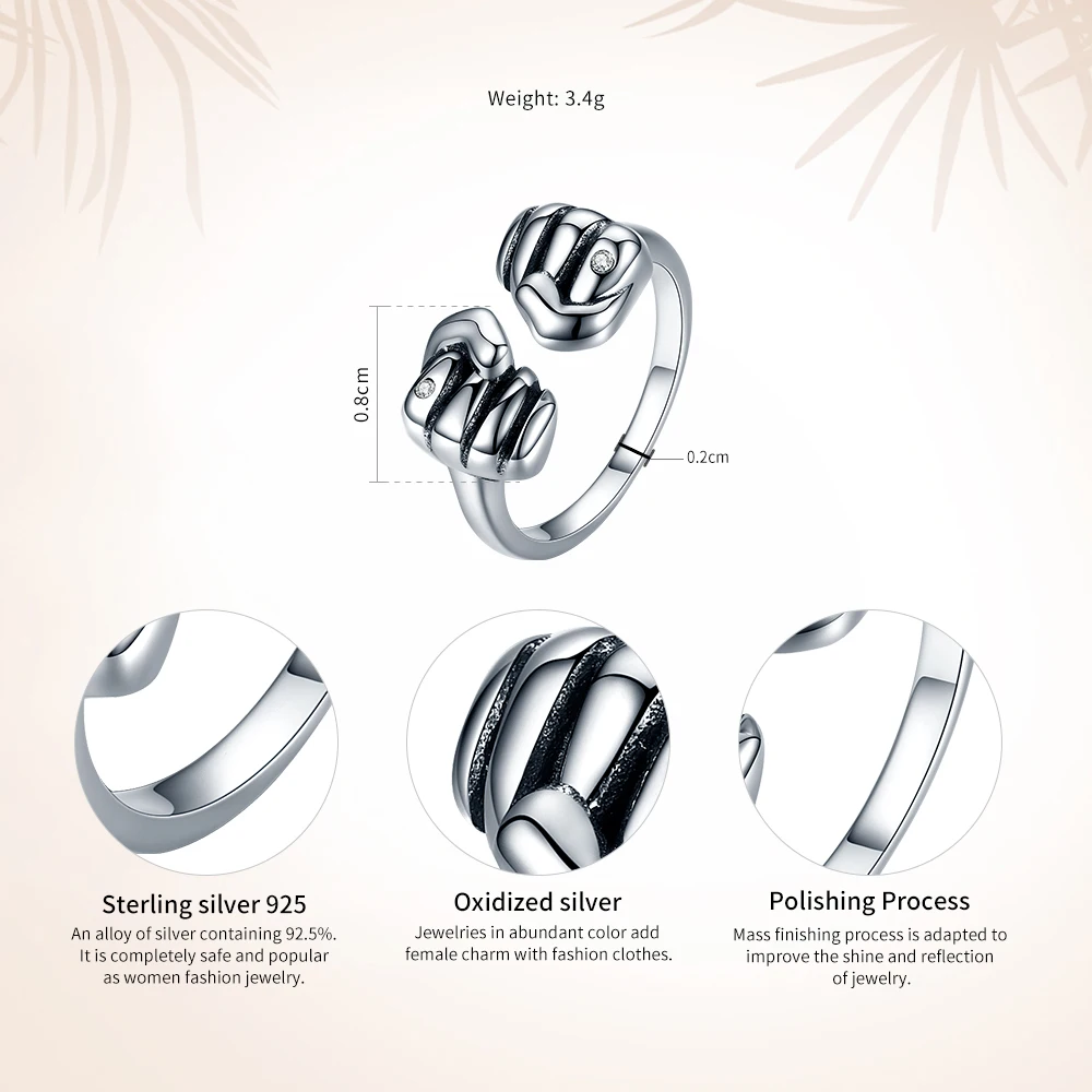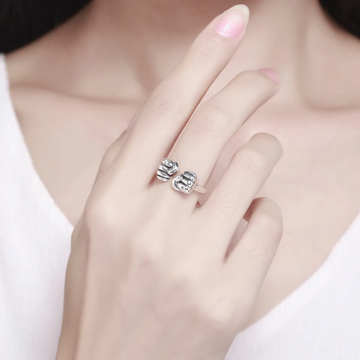 Authentic 925 Sterling Silver Ring Jewelry For Women Fists Courage Adjustable Open Cuff Rings Female Vantage Gift