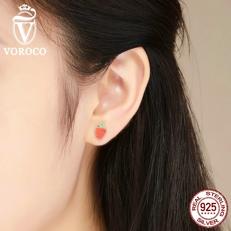 Cute Rabbit Carrot Stud Earrings Woman Girl Real 925 Sterling Silver Enamel Earring Trendy Brincos Fine Jewelry VSE154