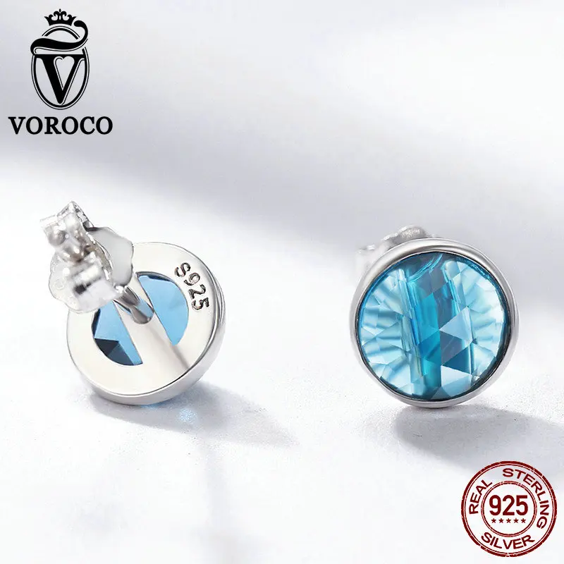 Round Stud Earrings For Woman Man Modern 925 Sterling Silver Earring Jewelry Girl Glitter Colorful Glass Brincos ZBBS520