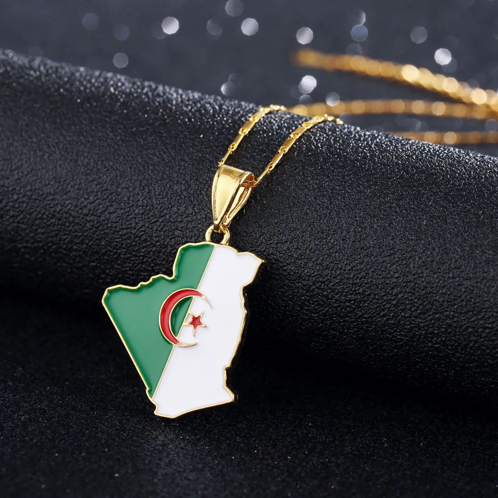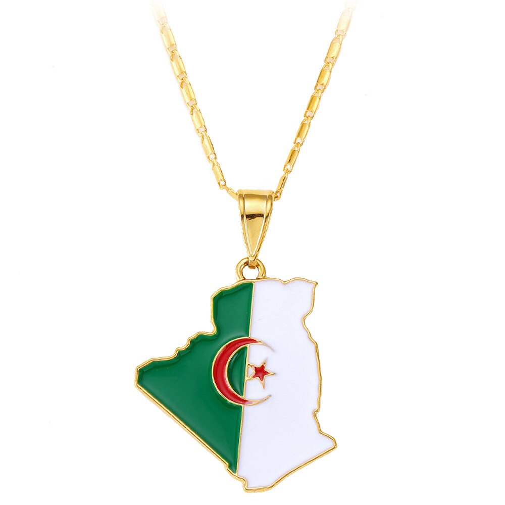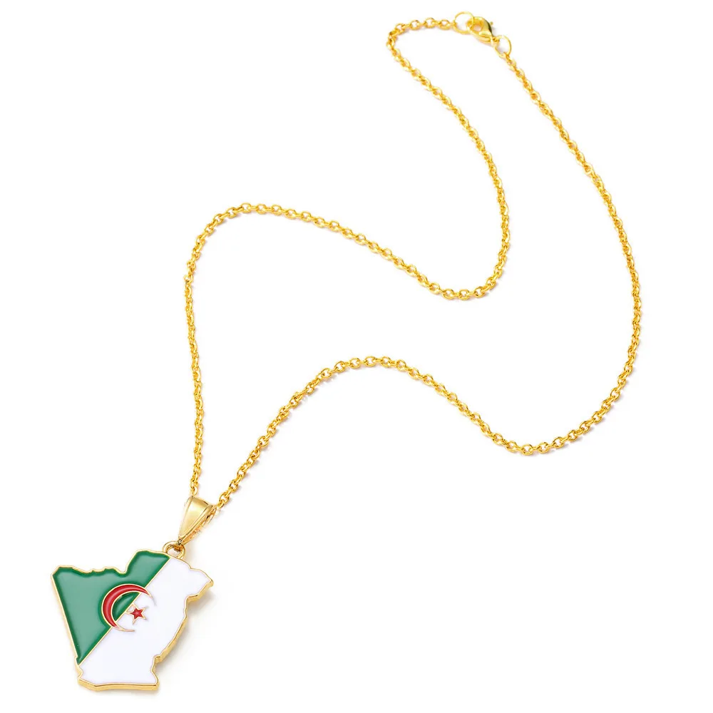 WANGAIYAO Couple Map Necklace Algeria Flag Drop Oil Golden Necklace