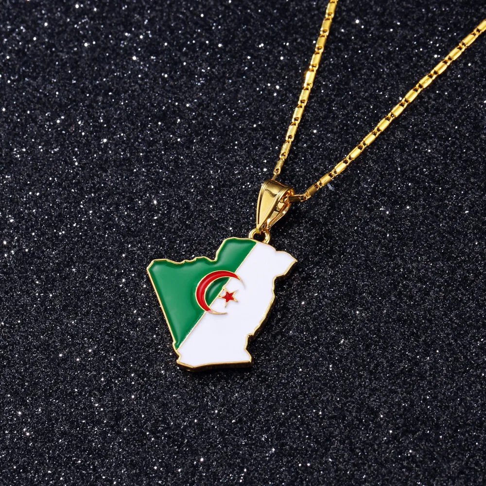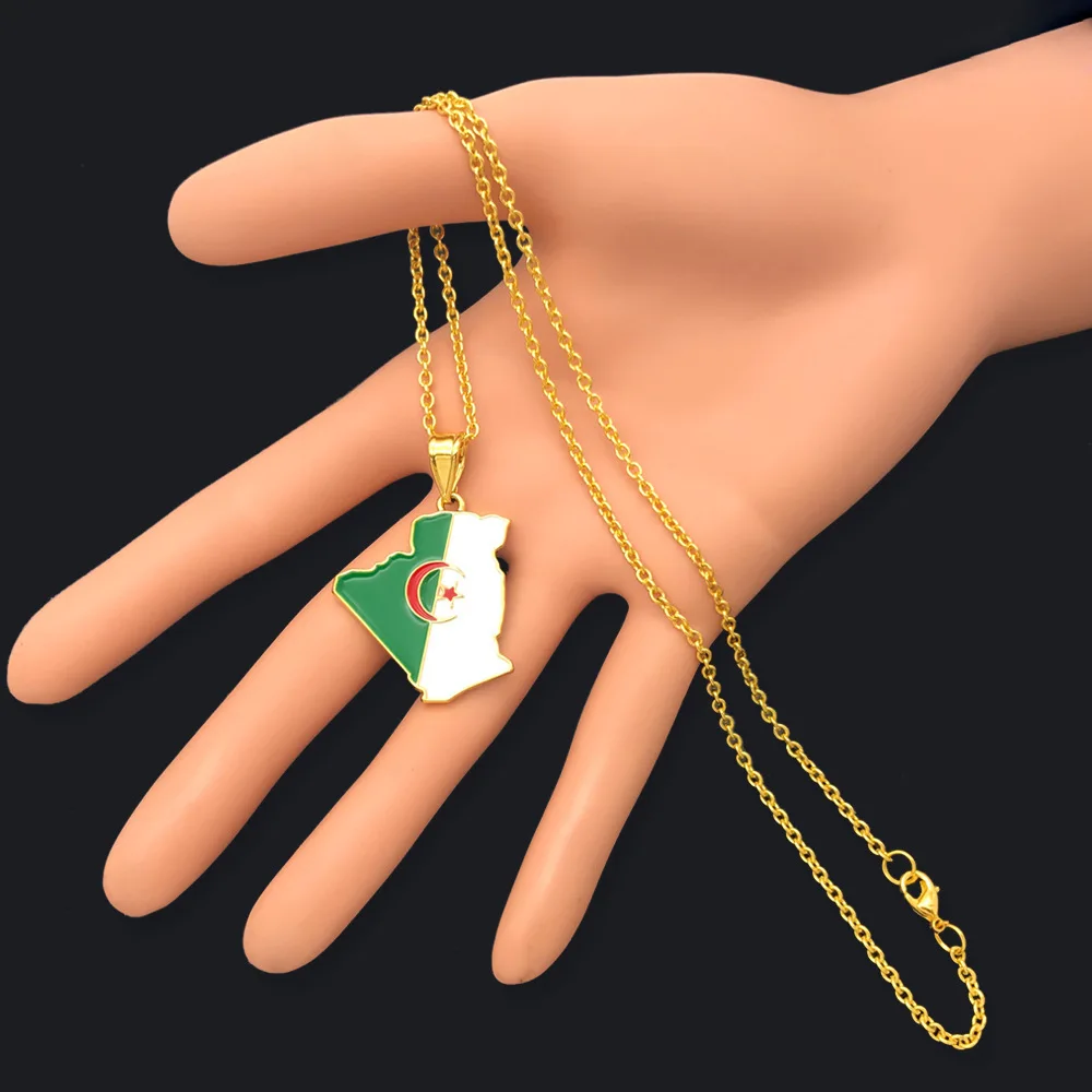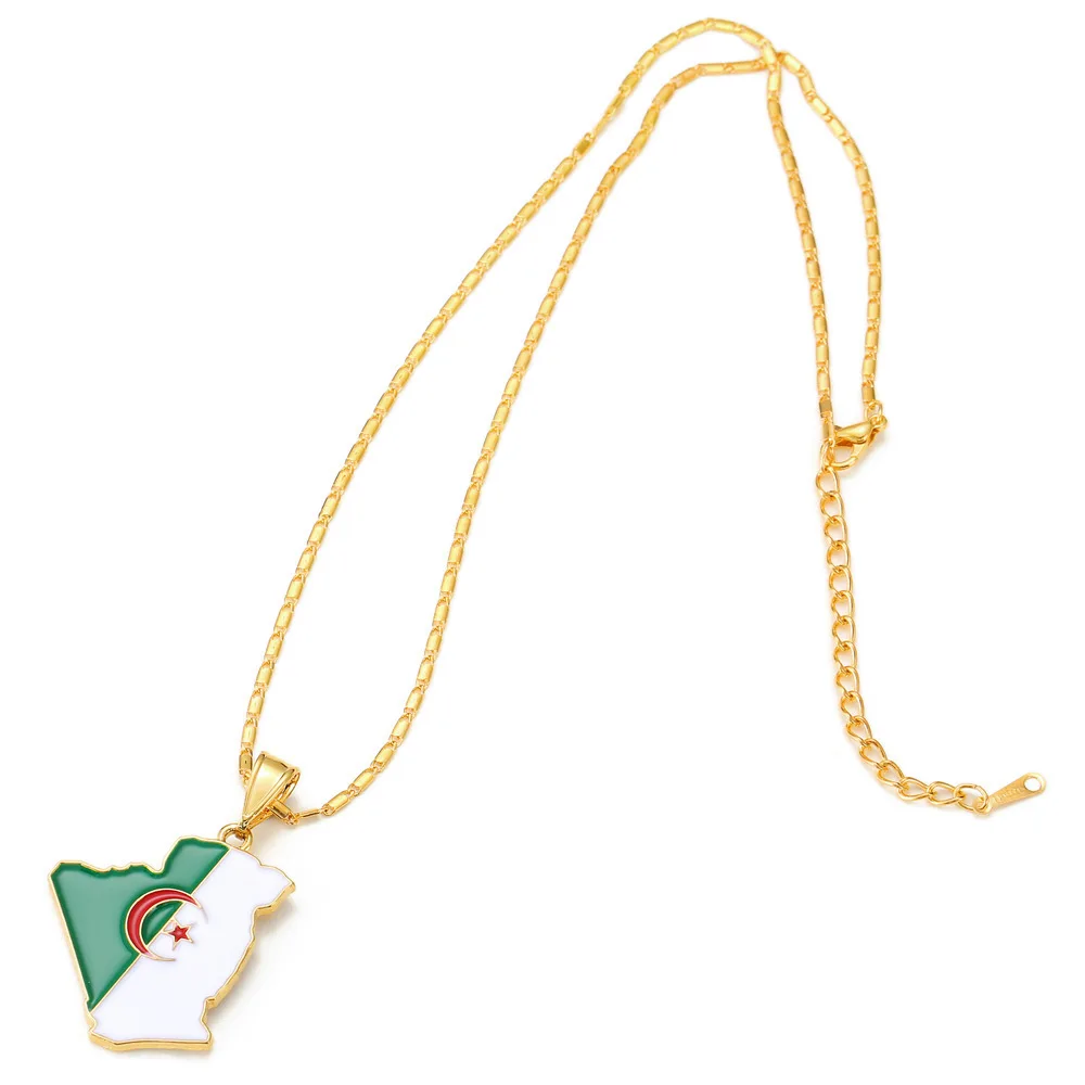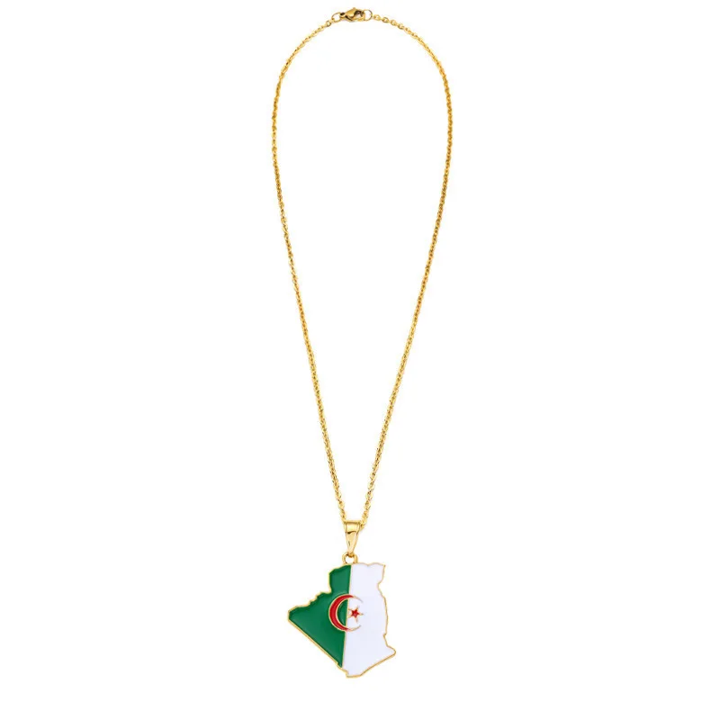 WANGAIYAO Couple Map Necklace Algeria Flag Drop Oil Golden Necklace