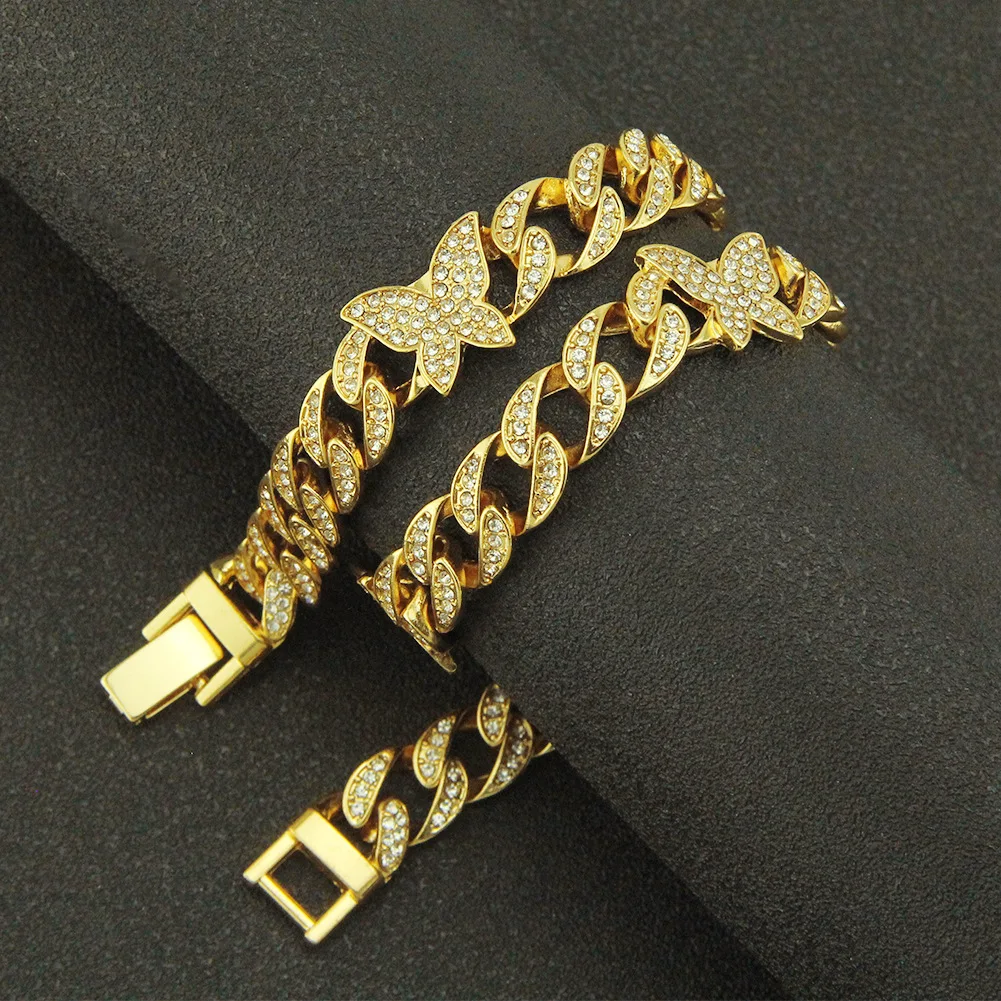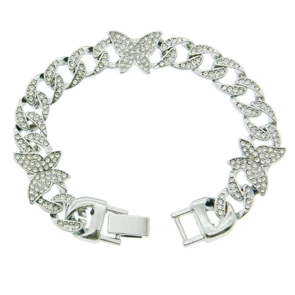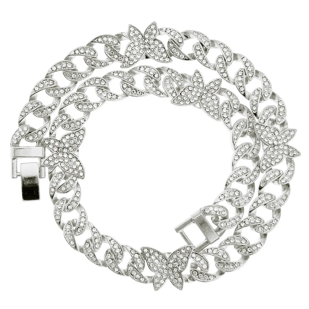 WANGAIYAO personality full zircon Cuban butterfly necklace male water zirconium butterfly clavicle chain necklace hip-hop me