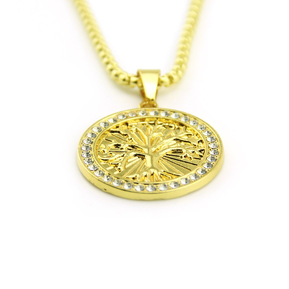 WANGAIYAO Personality Round Tree of Life Men’s Necklace Pendant Trend Hip Hop Necklace Men’s Commemoration Day Creat