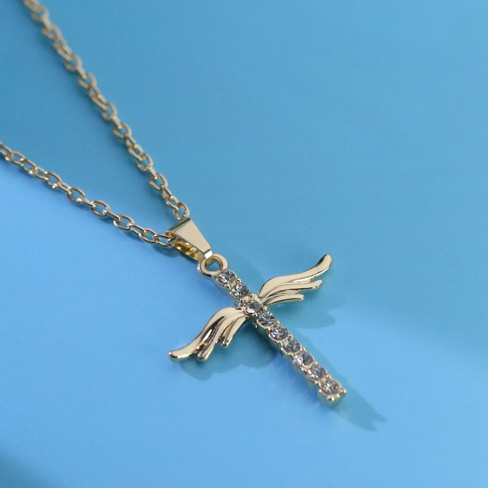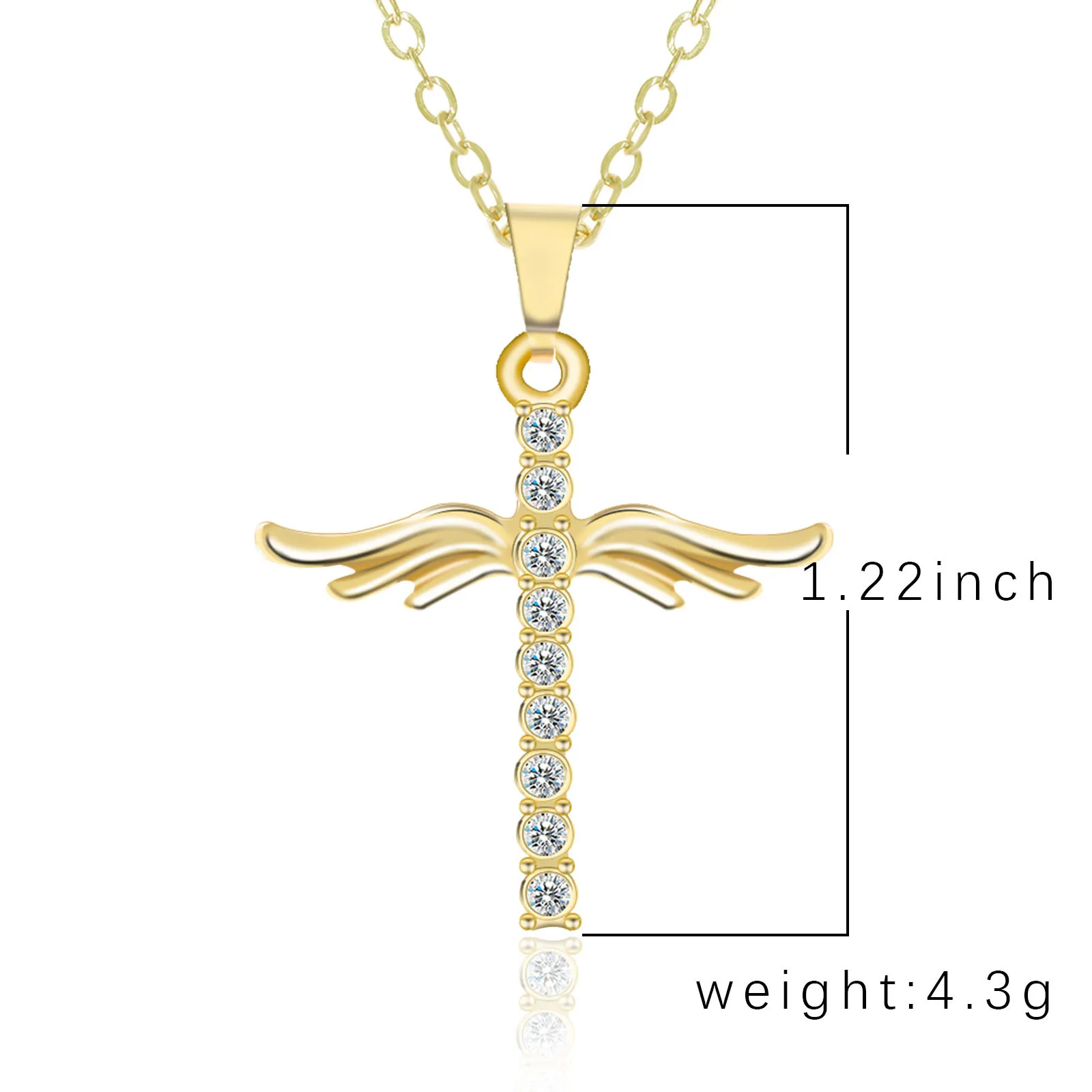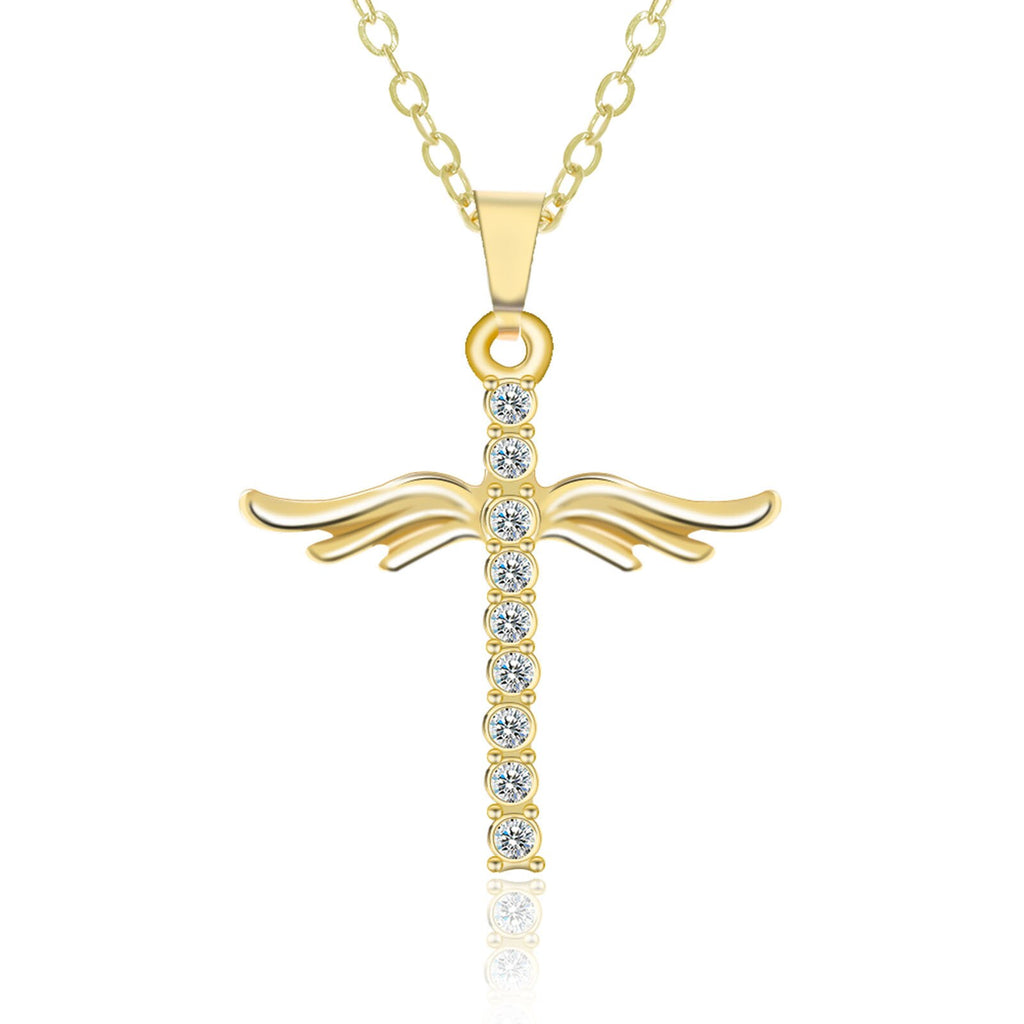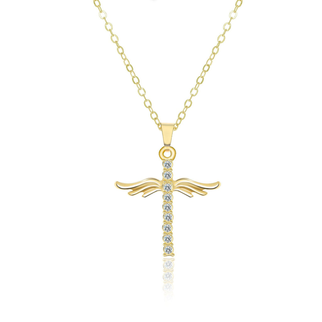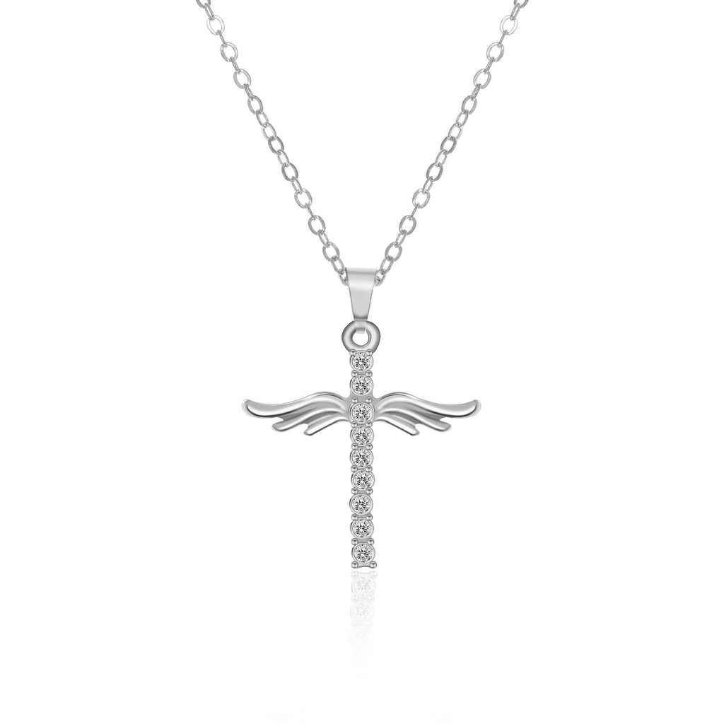 WANGAIYAO temperament angel wings ladies pendant simple and versatile cross inlaid zircon jewelry necklace Valentine