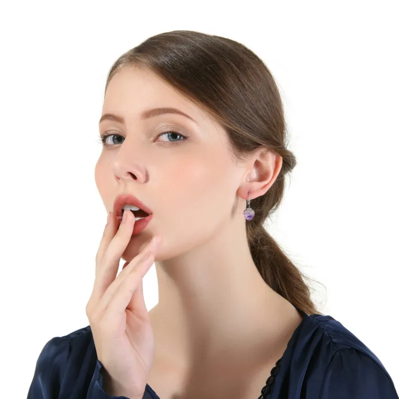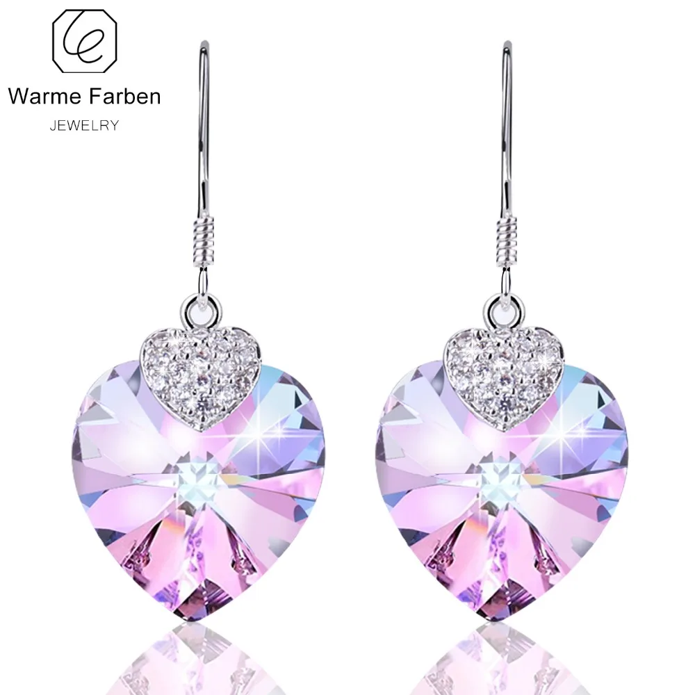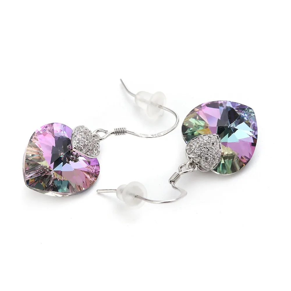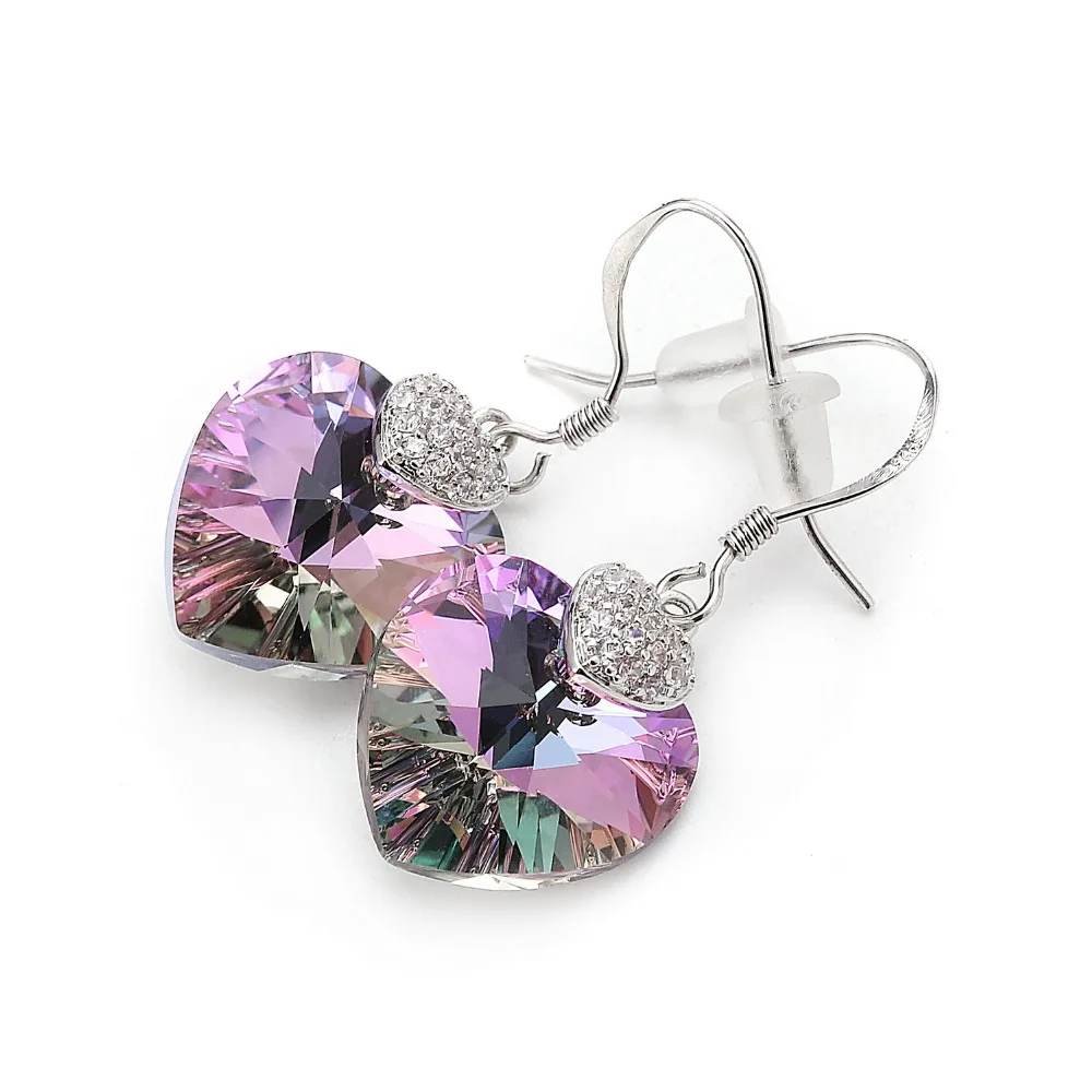 Crystal from Swarovski Women Earrings Amethyst Heart Drop Earring Fine Jewelry 925 Sliver Dangle Earring Brincos
