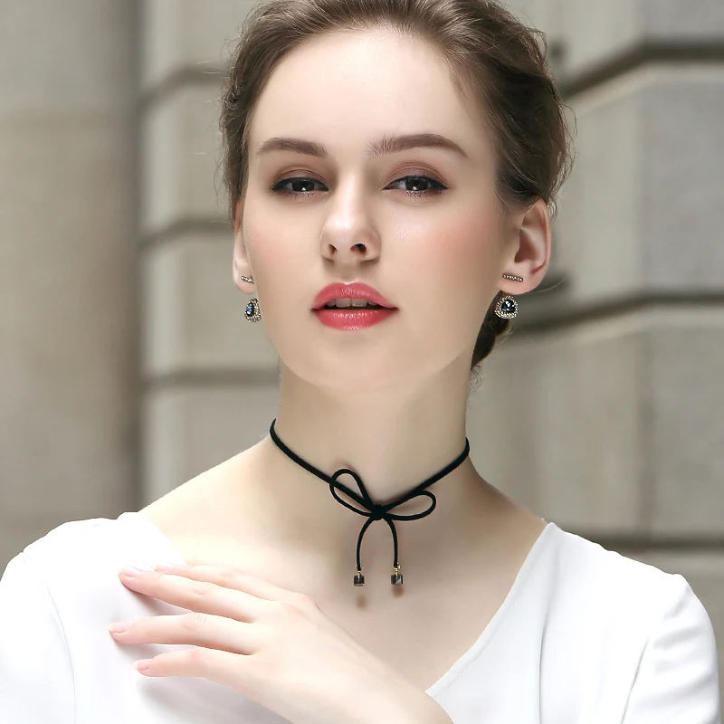 Crystal From Swarovski Women Earrings Retro Gold Color Black Crystal Inlaid Zircon Water Drop Dangle Brincos Female