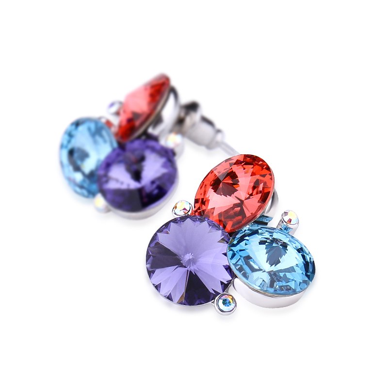 Ladies Crystal Stud Earrings Crystal From Swarovski Bohemia Round Real 925 Silver Earring Fine Jewelry for Women