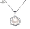 Women Necklace Plated Silver Zircon Flower Shaped Pendant Elegant Pearl Necklace Collares Jewelry Anniversary Gifts
