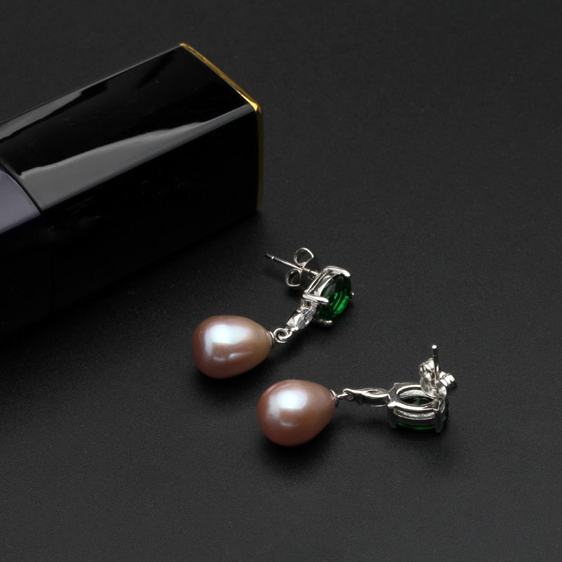 Wedding natural pearl earrings for women,blue stone 925 silver drop earring with pearl daughter gift