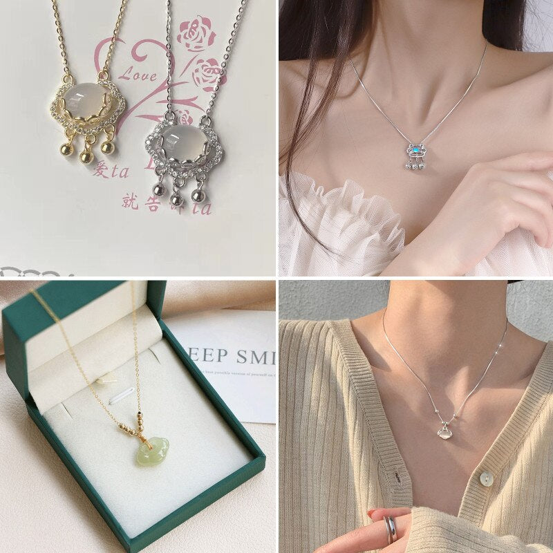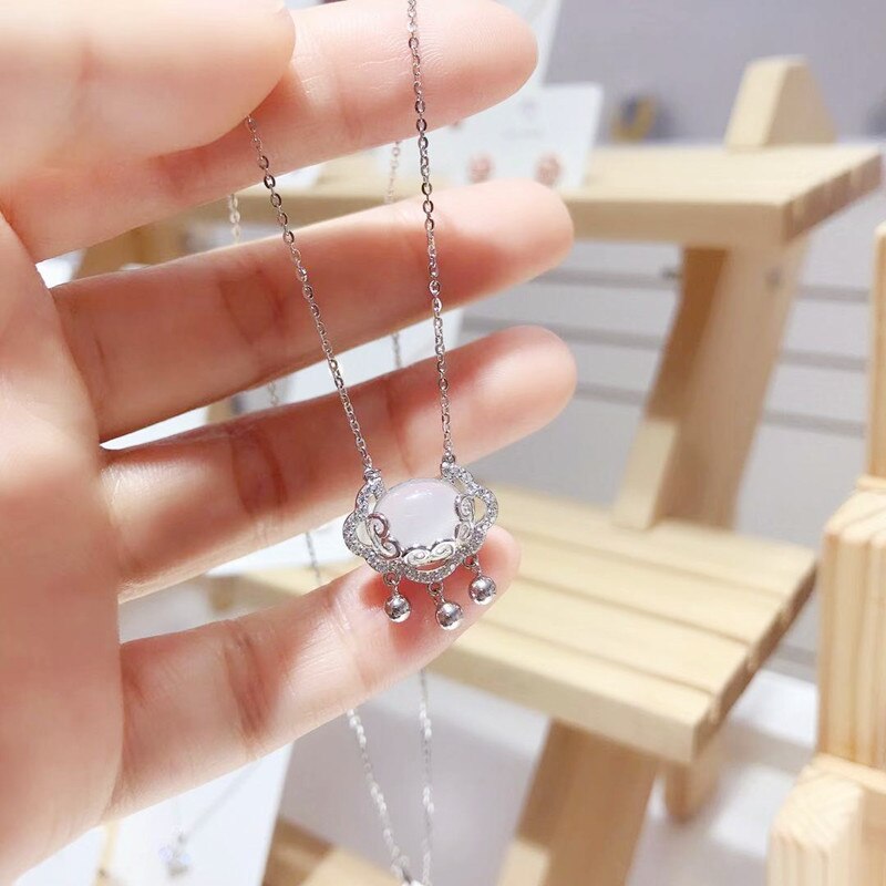 White Chalcedony Lucky Clouds Ruyi Peace Lock Necklace Girlfriend Mother's Day Gift for Mother Long Life Clavicle Chain Necklace
