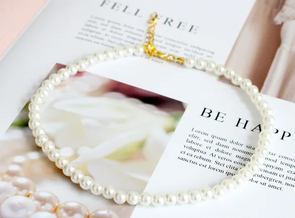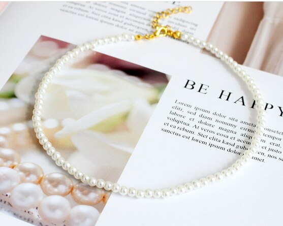White Imitation Pearl Choker Necklace Women Charm Simple Jewelry 4/6/8/10MM beads