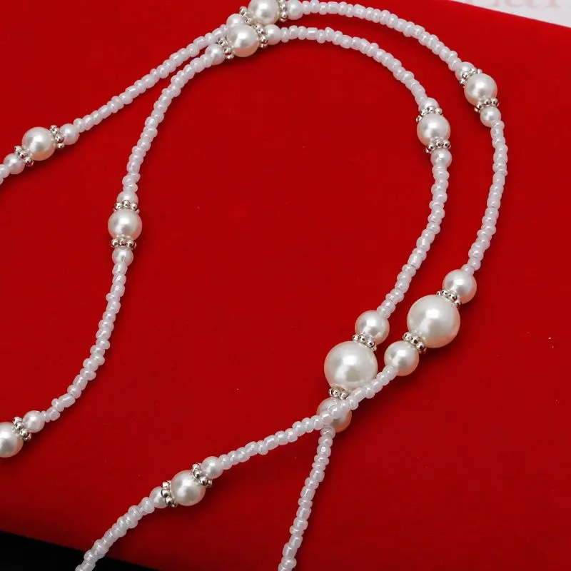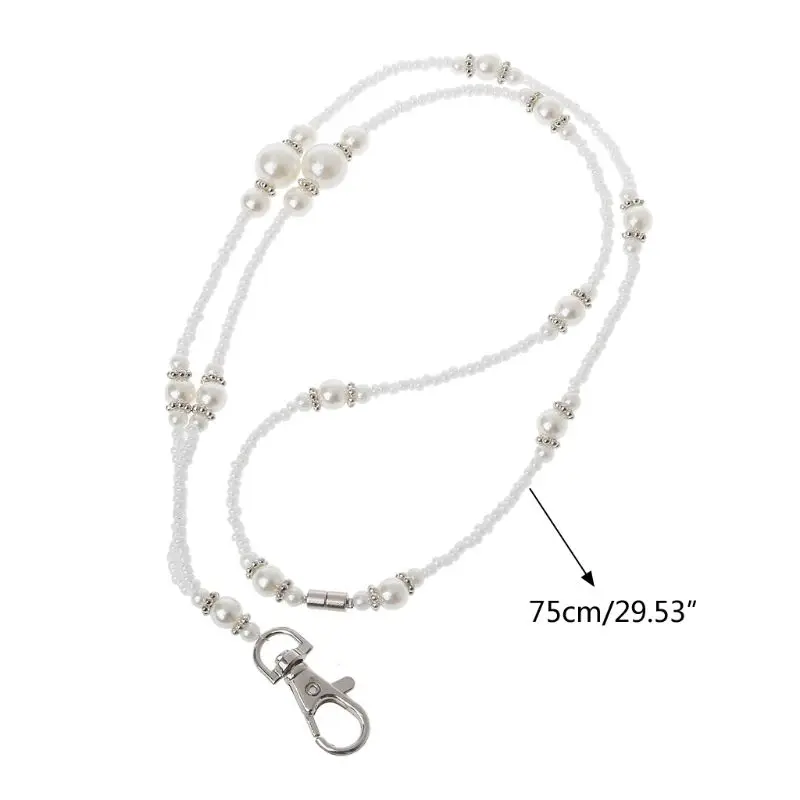 White Pearls Bead ID Badge Holder Lanyard Necklace with Magnetic Breakaway Clasp