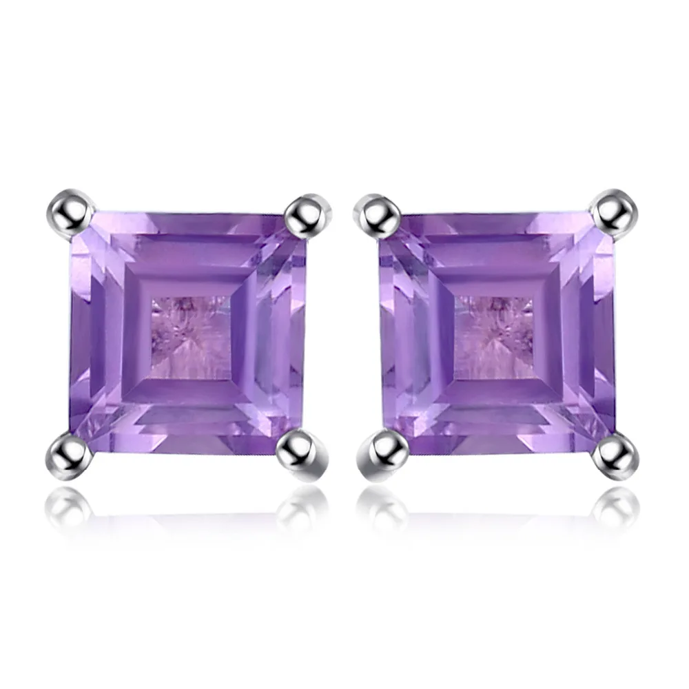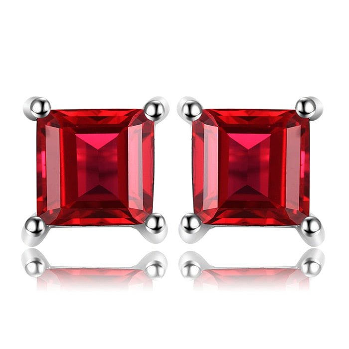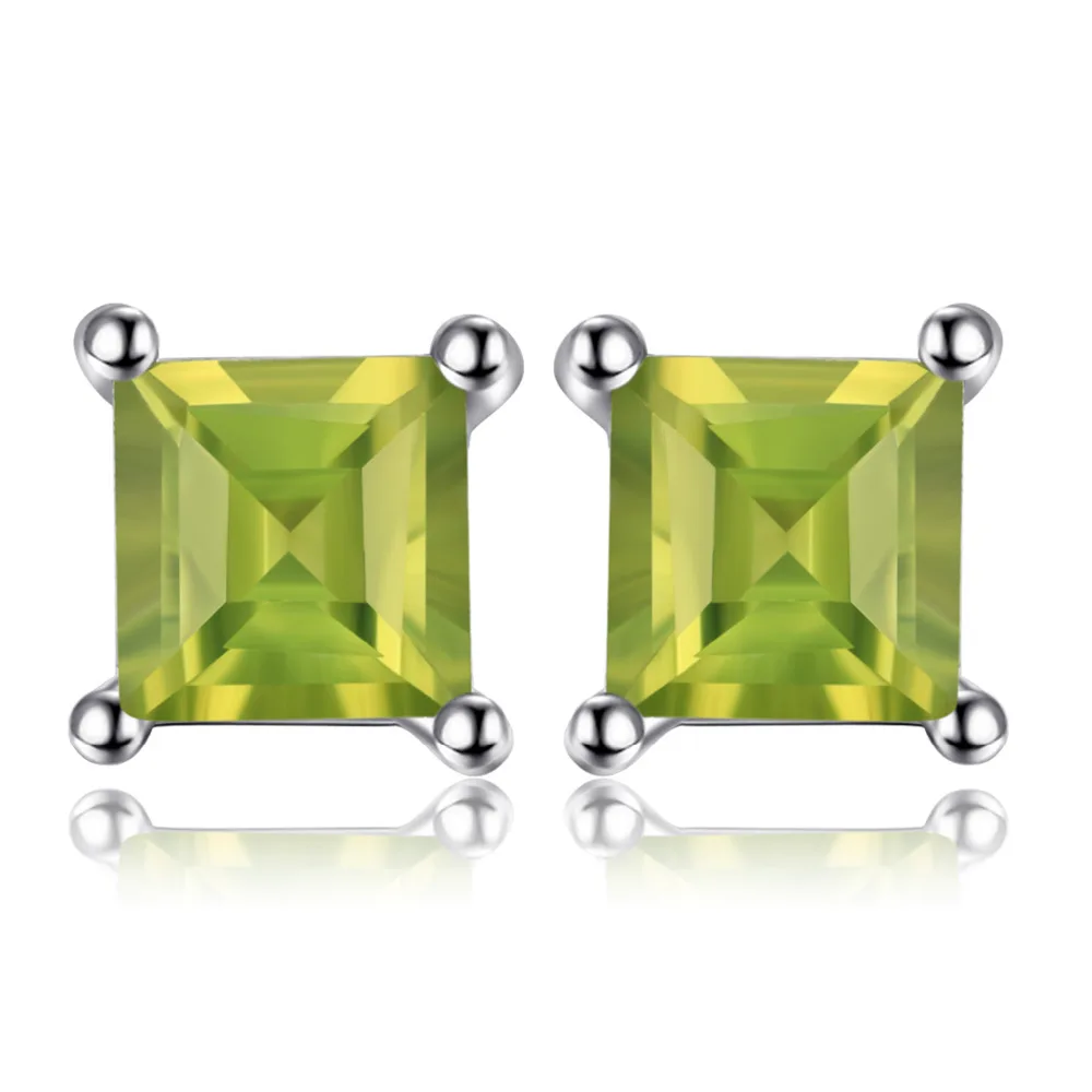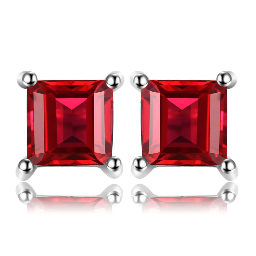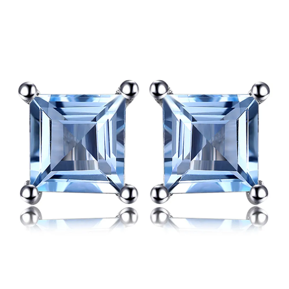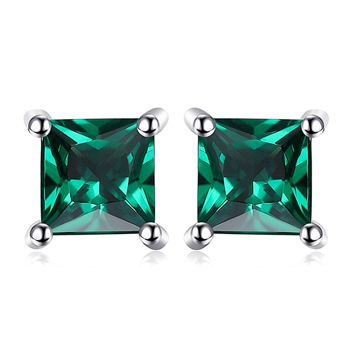 Square 0.6ct Created Emerald 925 Sterling Silver Stud Earrings Fashion Jewelry for Women