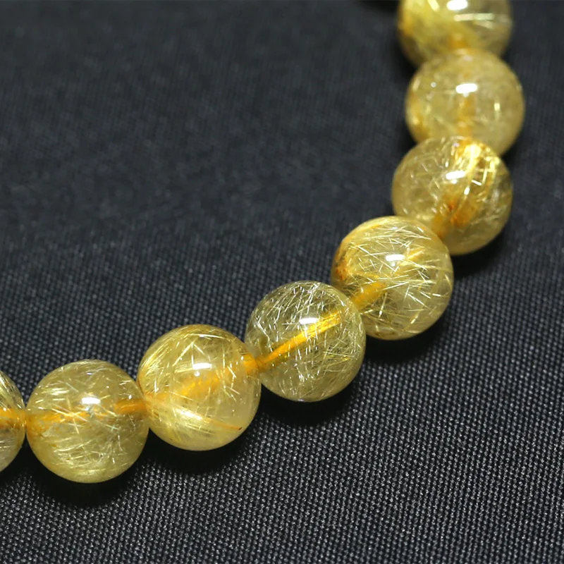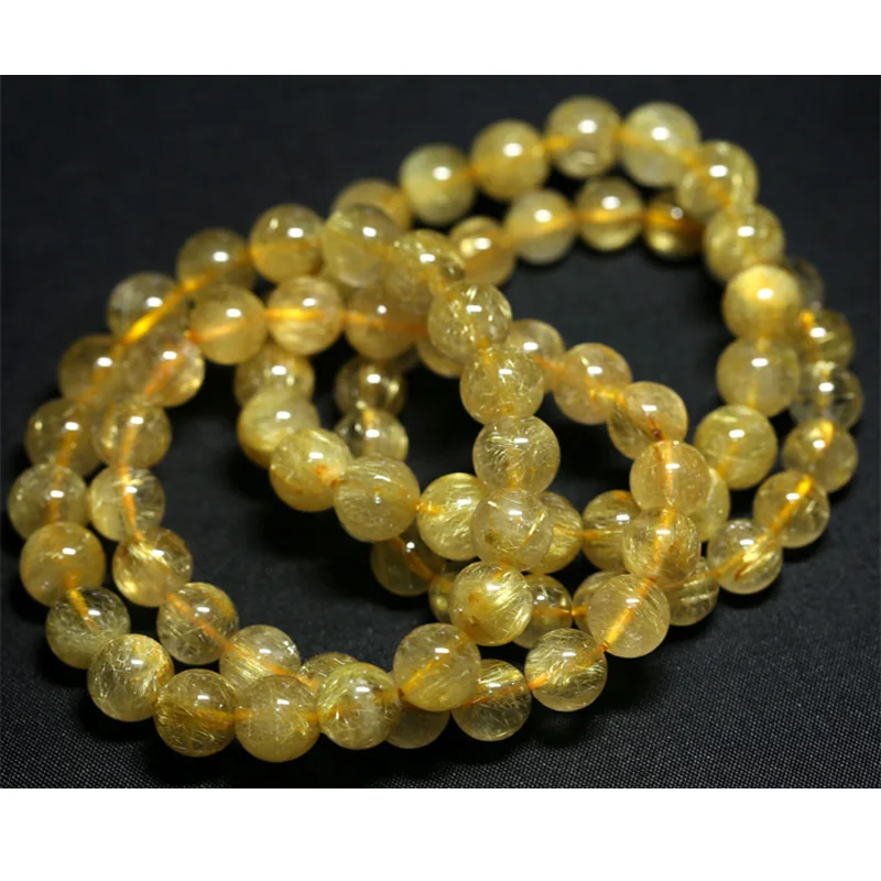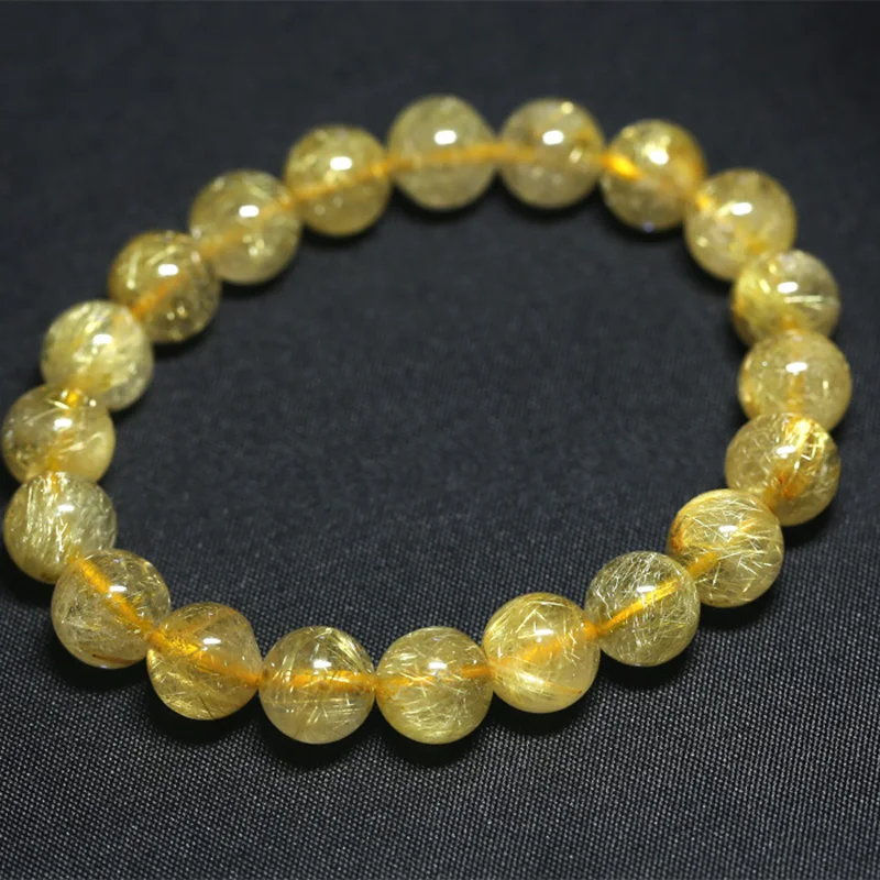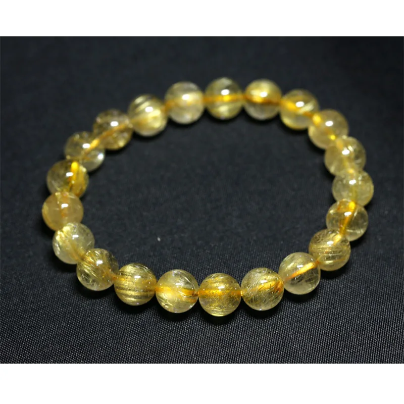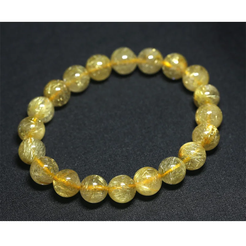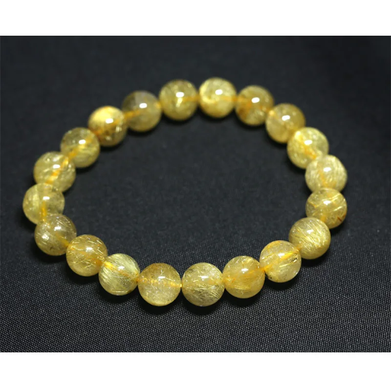 Wholesale Natural Genuine Yellow Gold Hair Needle Rutile Quartz Rutilated Finished Stretch Bracelet Round Jewelry beads 04171