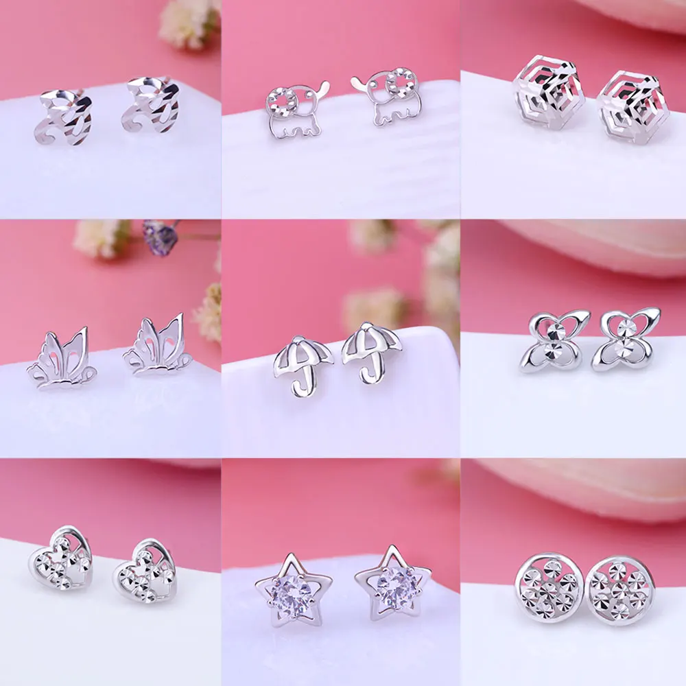 925 Sterling Silver Stud Earrings Star Heart Crystal 2020 Women Earring Brincos Fine Jewelry Wholesale OW EA044
